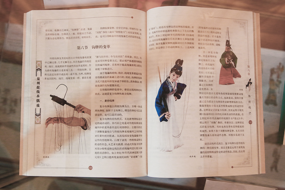 Пекинскую оперу представляет альбом «Грим в пекинской опере», изданный в Пекине в 1962 г. В альбоме собраны фотографии актеров пекинской оперы в костюмах и гриме. Альбом посвящён творчеству художника по гриму Хао Шоучэня, представителя театральной династии. Гриму в китайской опере свойственны яркие цвета (красный, черный, синий, зеленый, желтый и др.), гиперболизированные черты и орнаментальность. Каждый цвет символизирует определённые качества, поэтому, как только персонаж появляется на сцене, зрители сразу же могут определить, кто перед ними — герой или злодей, хитрец или простак, храбрец или трус. Грим пекинской оперы ведёт свое происхождение от масок, которые появились в глубокой древности и по сей день используются в некоторых других театрах Китая.