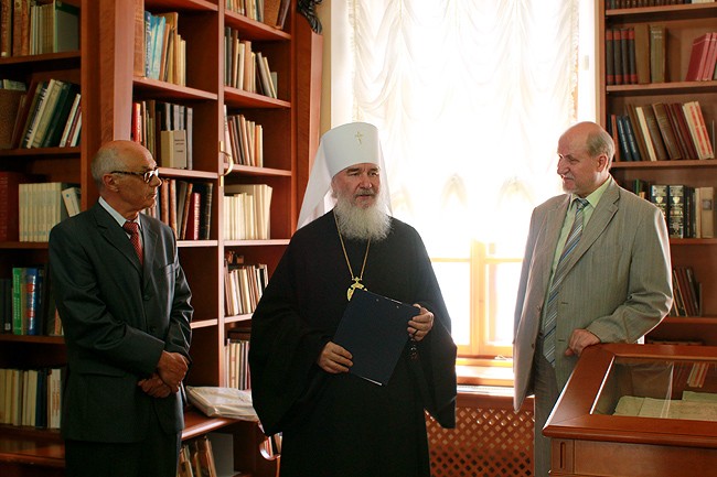 В 2015 году Русская православная церковь отмечает важную юбилейную дату — 200 лет со дня рождения великого подвижника и учителя Русской церкви, выдающегося богослова, проповедника и духовного писателя — святителя Феофана Затворника, причисленного в 1988 году на Поместном соборе Русской православной церкви к лику святых. К 200-летию со дня рождения святителя Феофана в читальном зале НИО рукописей РГБ открылась выставка документов, работы по изысканию которых проводились в фондах отдела на протяжении нескольких лет. К юбилею святителя Издательским советом РПЦ был приурочен большой проект — максимально полное и текстологически выверенное издание его творений в 40 томах и составление пятитомной летописи его жизни. С целью издания творений святителя под эгидой Издательского совета Русской православной церкви был образован Научно-редакционный совет под руководством митрополита Калужского и Боровского Климента, объединивший в своих рядах представителей церковной и светской академической науки. По всем архивам и библиотекам группа исследователей в течение нескольких лет собирала все, что имеет отношение к жизни святителя. Российская государственная библиотека выступила партнером проекта. Здесь, в НИО рукописей, на протяжении четырех с половиной лет велась работа по выявлению документов в различных фондах. В результате было обнаружено 350 источников, в том числе автографы святителя. Наиболее интересные документы из найденных можно увидеть на выставке в Румянцевском зале. Духовное наследие святителя Феофана поистине огромно — колоссальная переписка как с видными духовными и светскими деятелями той эпохи, так и с безвестными мирянами, тексты лекций, проповедей, переводов, множество богословских трудов. По свидетельствам современников святителя, из шести его комнат в Вышенской обители библиотека занимала четыре. Историки давно ее ищут, и недавно в НИОР РГБ установили, что ее следы ведут в Румянцевский музей и, соответственно, в РГБ, рассказал куратор выставки, главный архивист НИОР РГБ Дмитрий Чудинов. У библиотеки драматическая история — после смерти святителя ее унаследовал его племянник Алексей Гаврилович Говоров, который также скончался через год. Он был вдовцом и оставил сирот, опекуны которых приняли решение продать библиотеку. Ее приобрел московский купец, подарил ее в приход московской церкви Николы в Толмачах, откуда она попала в распоряжение Государственного исторического музея, а затем в Румянцевский музей. На сегодняшний день в РГБ найдено большое количество документов, связанных с подвижнической деятельностью святителя. Многие из них были ранее незнакомы широкой общественности, как духовной, так и светской, и экспонируются впервые. Благодаря им удалось пролить свет на неизвестные прежде факты биографии святителя, а многие известные ее эпизоды обросли новыми подробностями. Представленные на выставке материалы разделены по тематическому признаку, согласно основным вехам жизни святителя Феофана. Среди них копии свидетельств о рождении и смерти святителя, заявления его наследников о вступлении в права наследства, послужные списки преосвященного Феофана, большое количетво писем святителя и к нему, а также материалы Издательского совета Русской православной церкви о причислении епископа Феофана к ли