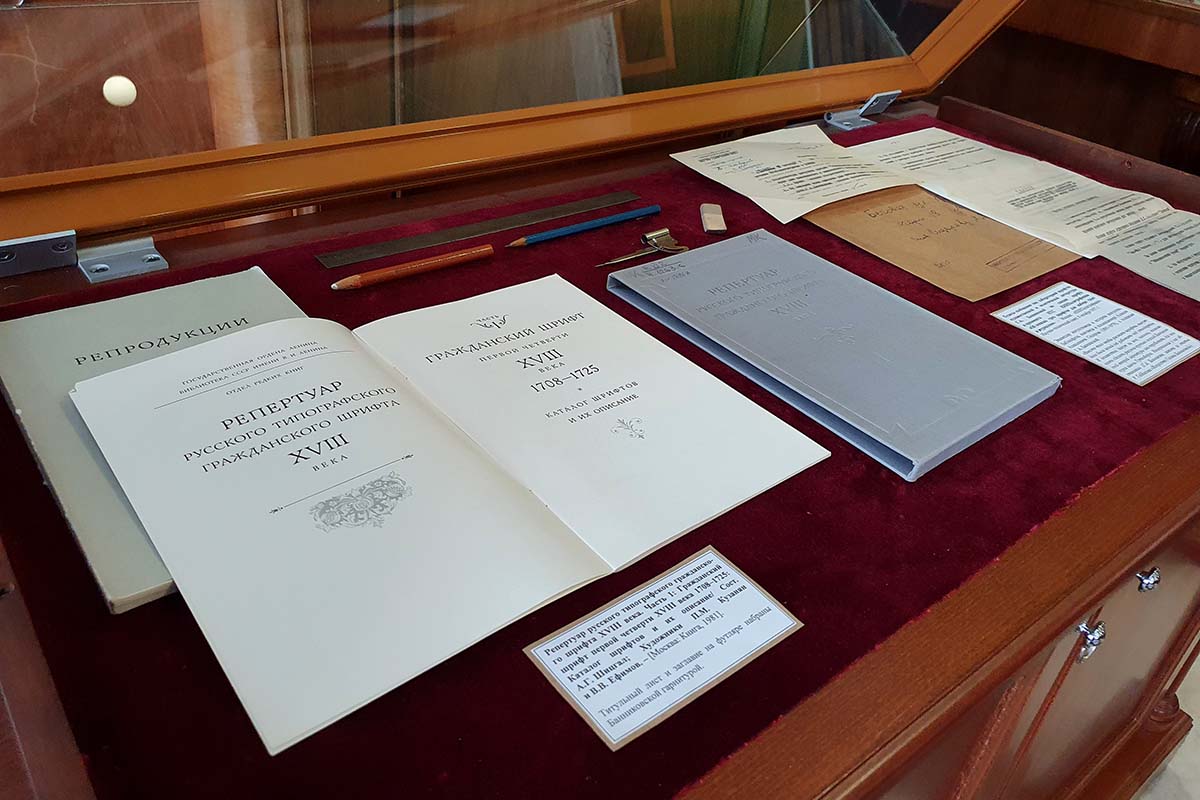 В Музее книги работает мини-выставка из цикла «Художник и книга», посвящённая автору шрифтов Галине Андреевне Банниковой и приуроченная к 120-летию художницы.