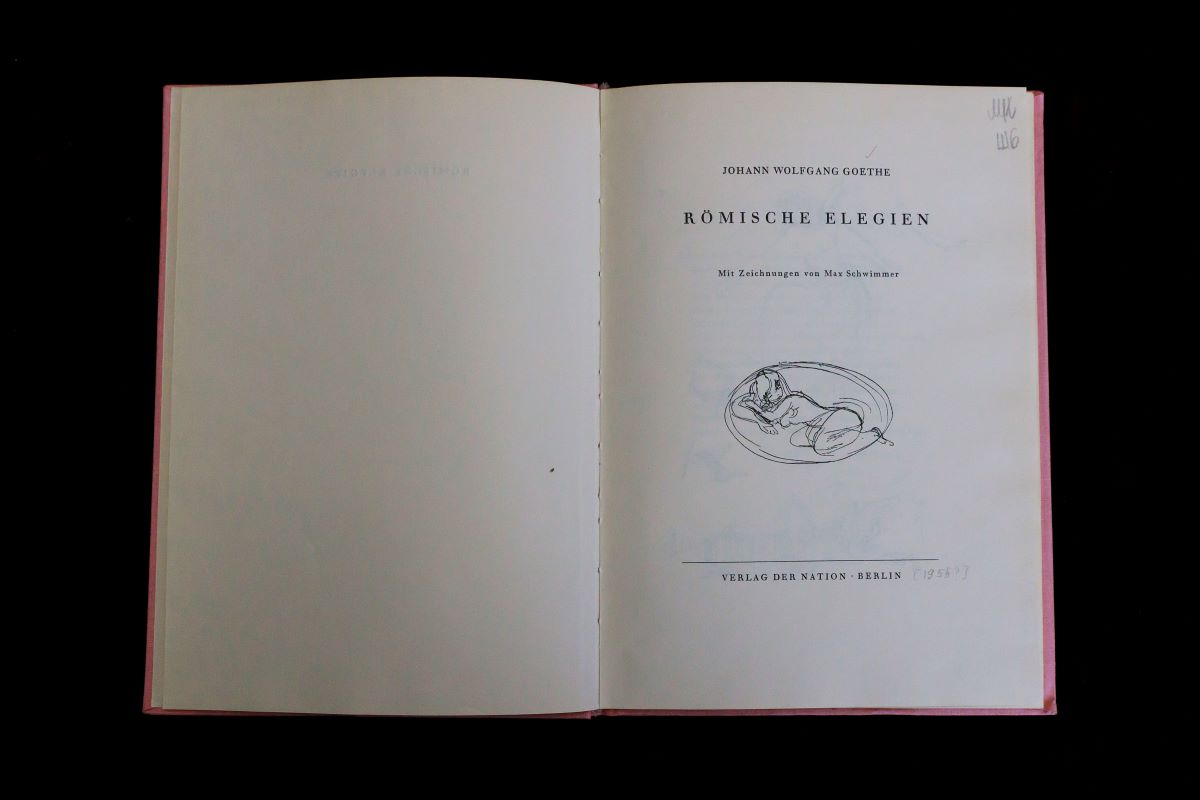 Goethe, Johann Wolfgang von. Römische Elegien / Johann Wolfgang Goethe ; mit Zeichnungen von Max Schwimmer. Berlin : Verlag der Nation, [1955?]