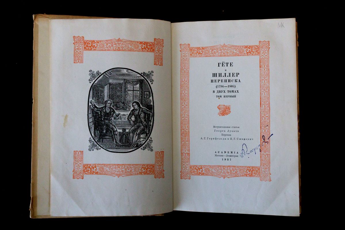 Гёте И. В. Переписка. (1794–1805). Том 1 1791–1797 : в 2 томах / Гете и Шиллер ; вступ. статья Георга Лукача ; пер. А. Г. Горнфельда и И. Г. Смидович. Москва ; Ленинград : Academia, 1937