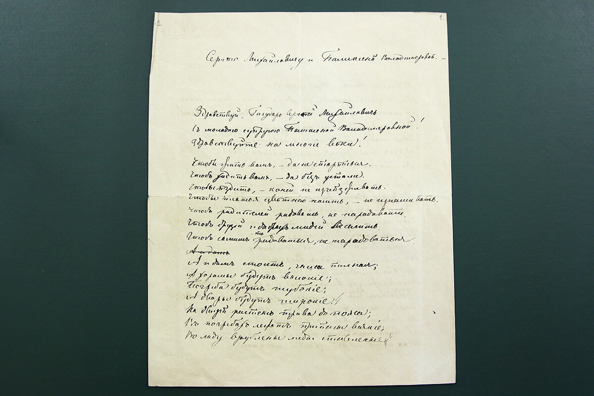 Целый раздел выставки посвящён переписке Сергея Михайловича Соловьёва с выдающимися деятелями культуры Константином Сергеевичем Аксаковым, Николаем Алексеевичем Некрасовым, Фёдором Ивановичем Буслаевым, Владимиром Фёдоровичем Одоевским, Павлом Йозефом Шафариком и другими.