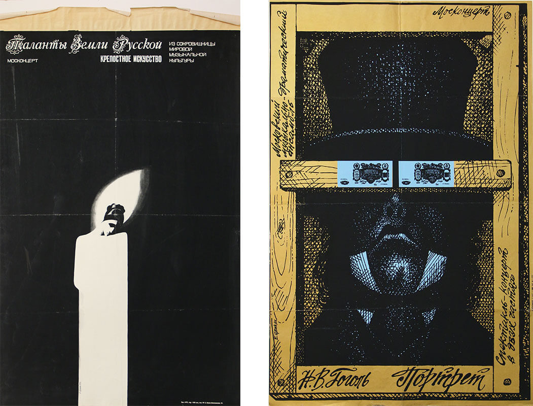 Слева: Таланты земли русской. Крепостное искусство. Из сокровищницы мировой музыкальной культуры. Москонцерт. Художник Е. С. Цвик. 1974