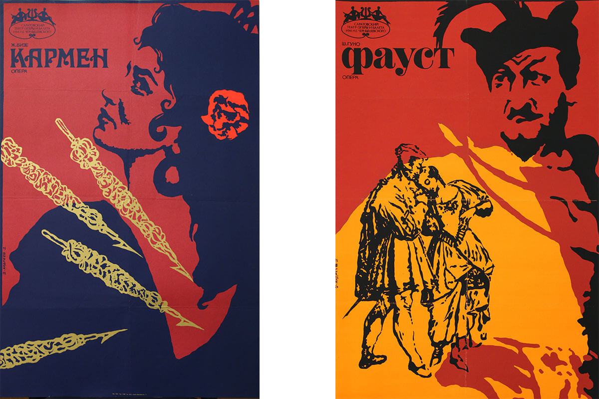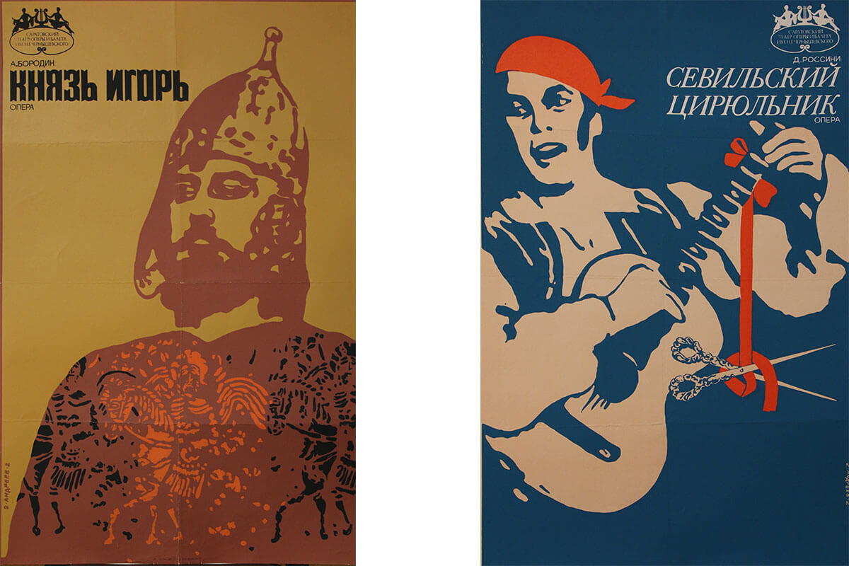 О художниках, подписывавших свои работы «2·Андреев·2», неизвестно практически ничего. Все представленные на выставке работы были созданы для Саратовского театра оперы и балета имени Н. Г. Чернышевского в 1974—1975 годы. Они удивительно интерпретируют оперные постановки театра классического репертуара: «Аида», «Кармен», «Женитьба Фигаро», «Евгений Онегин», «Князь Игорь», «Русалка». Все плакаты выполнены в едином стиле, на высоком профессиональном уровне и в хорошем полиграфическом исполнении. Тем не менее о художниках нет информации. Как следует из их артистической подписи, они, вероятно, соотносили своё творчество с наследием великих конструктивистов братьев Георгия и Владимира Стенбергов, которые подписывали свои совместные работы «2Стенберг2». Удивительно, что плакаты напечатаны в технике шелкографии — дорогой и сложной технике печати, особенно для нестоличных театров.