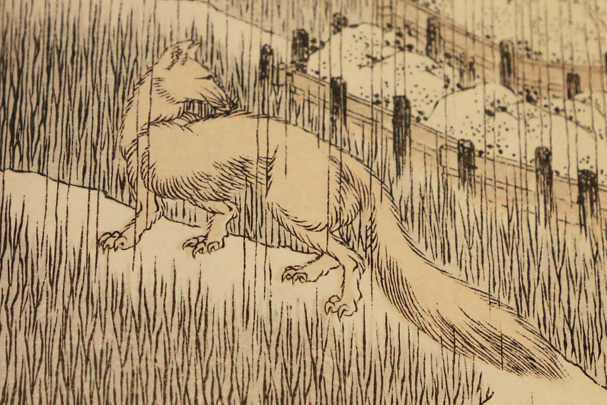 На выставке экспонируются уникальные издания с иллюстрациями великого японского художника Кацусика Хокусая (1760—1849). Имя японского художника широко известно во всём мире. Хокусай один из самых известных на Западе японских гравёров, мастер завершающего периода японской ксилографии. Его творчество знаменует целую эпоху в истории японского искусства. Творческий диапазон Хокусая очень велик — художник создавал портреты актёров и театральные афиши, живописные картины-свитки, иллюстрации к литературным произведениям и серии гравюр.