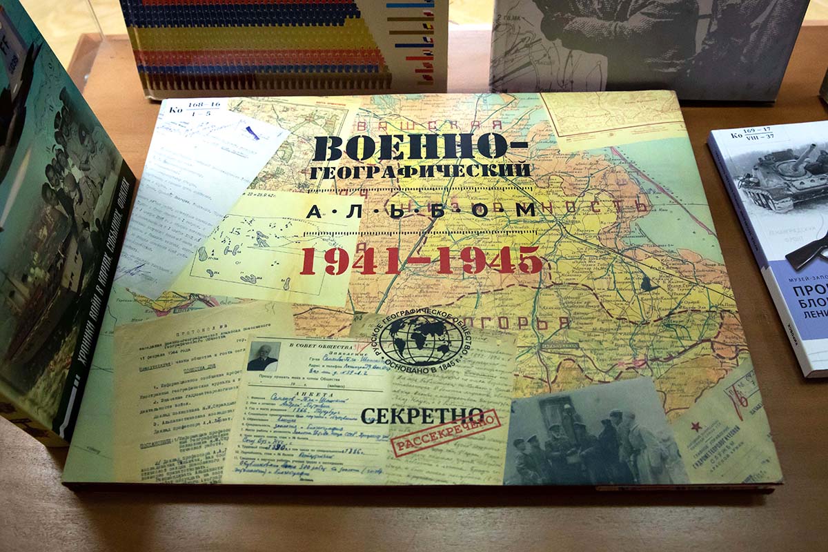 Военно-географический альбом. 1941—1945 (М.: Паулсен, 2020) , составленный Русским географическим обществом и изданный к юбилею Великой Победы. В альбоме собраны уникальные, не публиковавшиеся ранее военно-географические материалы и документы из архивов Минобороны России, Российской Академии наук, Росгидромета, Русского географического общества и других организаций. Они открывают засекреченную страницу истории военной географии, показывают значимость профессиональной деятельности географов во время Великой Отечественной войны и их вклад в приближение Победы.