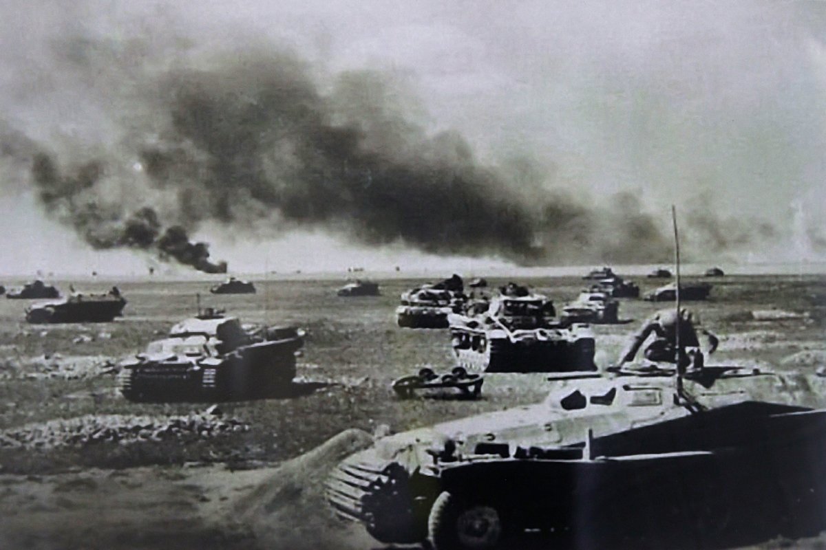 5 июля 1943 года немецкое командование на́чало на Курской дуге операцию «Цитадель», стремясь окружить советские войска, державшие под Курском оборону. Ожесточённые сражения состоялись под Понырями и Прохоровкой. В районе Прохоровки 12 июля произошло самое крупное танковое сражение Второй мировой войны, в котором с обеих сторон участвовало до 1200 танков и самоходных орудий. Стороны понесли огромные потери в технике: советские войска потеряли 500 танков из 800, у немцев было уничтожено 300 танков из 400, в том числе новые «тигры» и «пантеры».