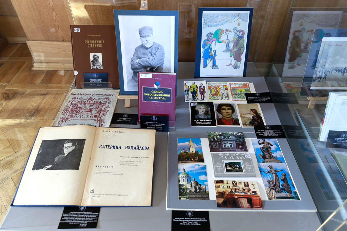 На выставке представлены как издания произведений Николая Семёновича начиная с XIX века вплоть до наших дней, так и воспоминания о нём, музыкальные произведения, созданные по мотивам книг писателя: