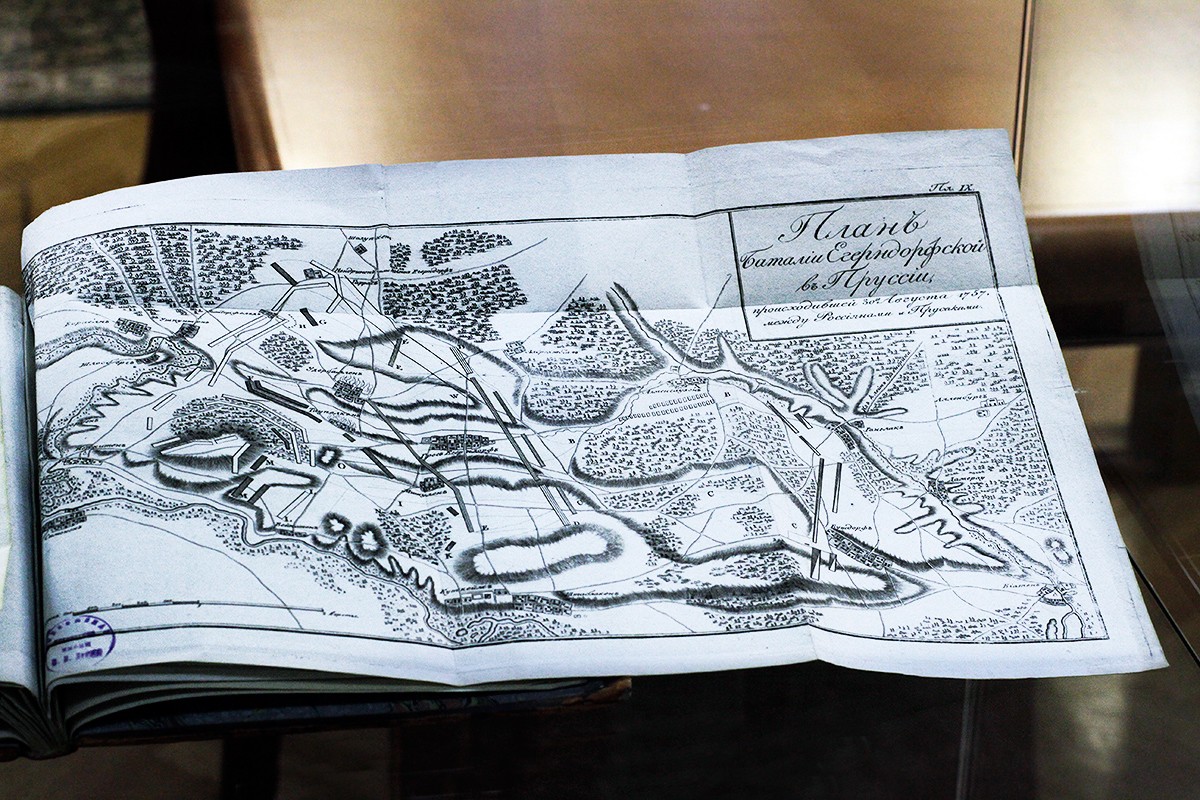 Из планов городов выбраны редкие издания: «План столичного города Санкт-Петербурга с изображениями знатнейших оного проспектов» , составленный а дъюнктом географического департамента Петербургской академии наук Иваном Трускоттом в 1753 году, и «План императорского столичного города Москвы, сочинённый под смотрением архитектора Ивана Мичурина в 1739 году». Все представленные на выставке рукописные атласы и карты чрезвычайно редкие, сохранившиеся в единственном экземпляре. Это «Планы на уездные города и посады Московской губернии» , составленные надворным советником Тодтом в 1873 году (рукописный атлас дополнен печатной картой Московской губернии); «Атлас Смоленской губернии» , составленный в 1790-х годах. Девятнадцатый век характеризуется широким развитием военной топографии в России. Картографические произведения, созданные в этот период, отличают как точность в нанесении географических объектов и рисовке рельефа, так и изящество оформления. Шедеврами оформительского искусства, созданными специально для личных библиотек русских императоров и членов царской фамилии, являются военные карты маневров и диспозиций войск. На выставке вы увидете «План Петергофа и Александрии» , гравированный со съёмки генерал-лейтенанта Шуберта (1842), который входил в состав библиотеки императрицы Александры Фёдоровны, и «Карту Азиатской России и смежных с нею владений с указанием пути следования Государя Императора в 1890—1891 годах в бытность Его Величества наследником цесаревичем и Великой Сибирской железной дороги» (1900), принадлежавшую императору Николаю II. Отдел картографических изданий надеется, что выставка «Объединяя пространство и время» будет интересна не только не только представителям научного картографического сообщества, но также широкому кругу любителей и ценителей карты.