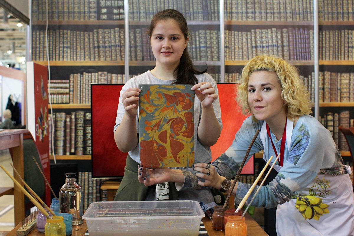 Большой популярностью пользовались мастер-классы для детей и взрослых. Ведущая Арина Галеева познакомила участников мастер-класса «Искусство эбру» с разными техниками мраморирования бумаги, научила создавать самые известные орнаменты, а затем каждый желающий смог придумать свой, неповторимый рисунок и перенести его на бумагу. А под руководством Екатерины Аракчеевой на мастер-классе «Книжный бестиарий» участники создавали куклу, животное или диковинное существо, украшали его и придавали подвижность. Фигурки были сделаны по рисункам из раритетных библиотечных книг, таких как «Христианская топография» Космы Индикоплова, «Физиолог» XVI века или «Бестиарий».