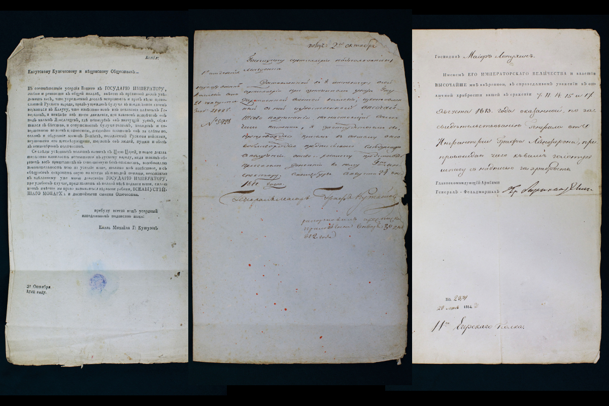 Впервые на выставке будут представлены оригинальные документы с автографами Михаила Богдановича Барклая де Толли, Александра Петровича Тормасова.
