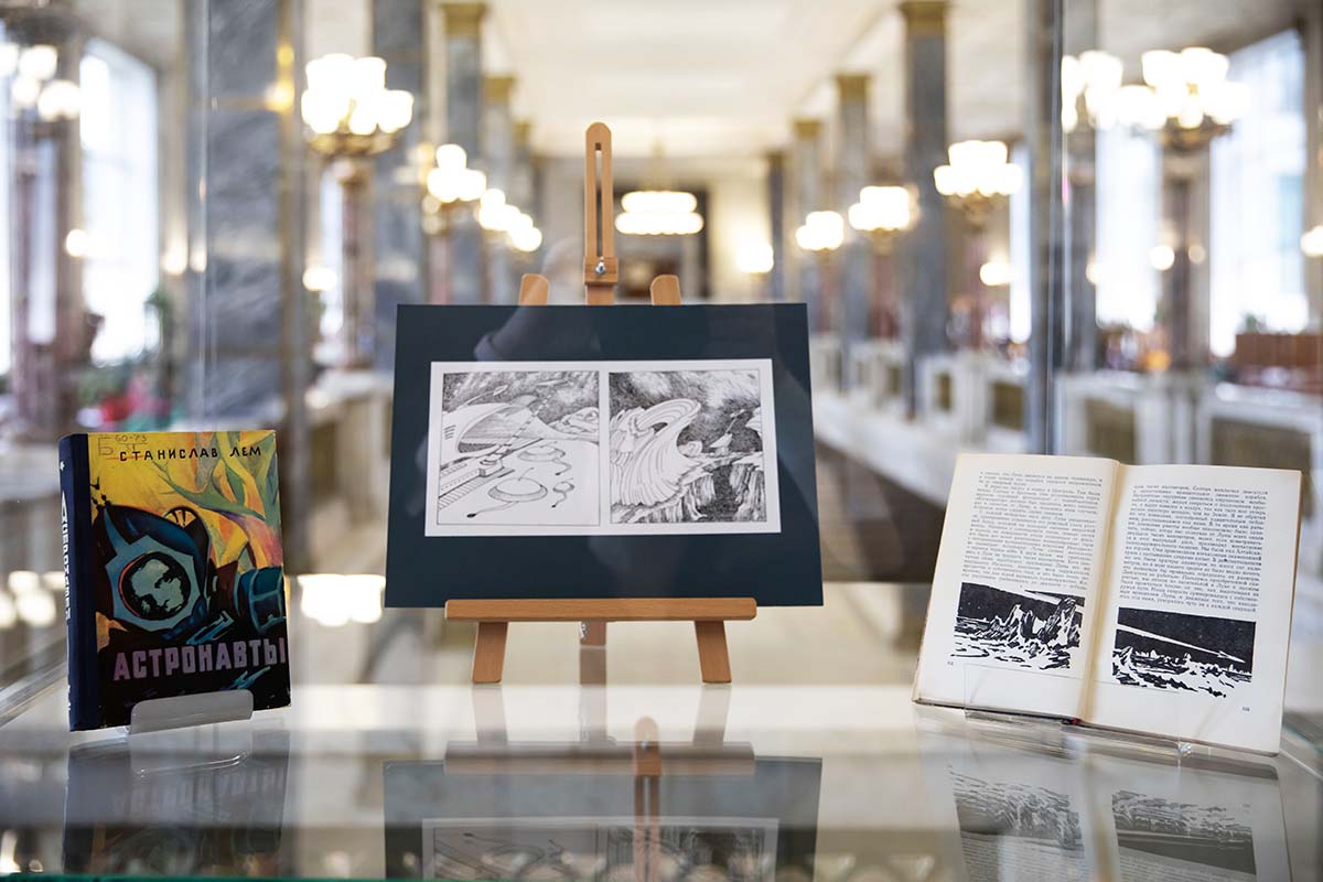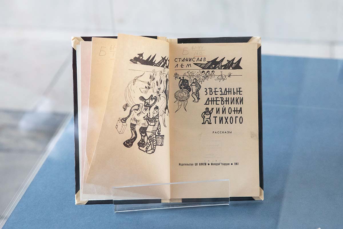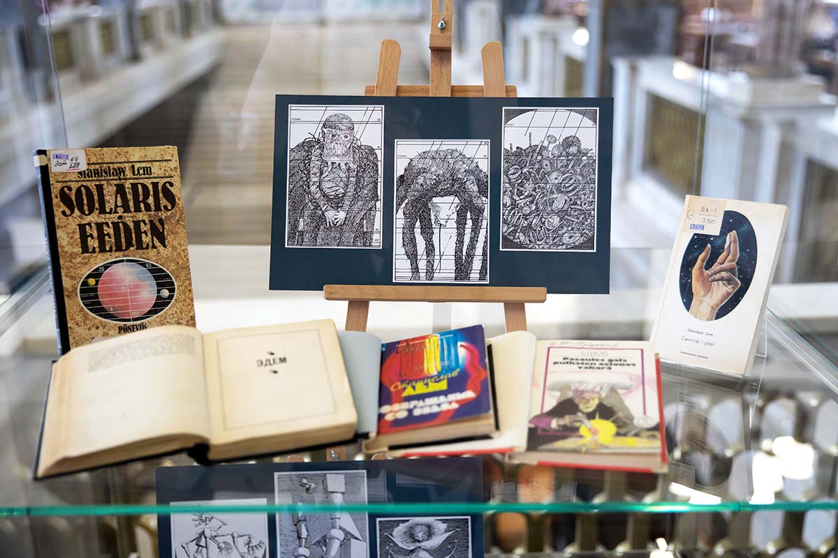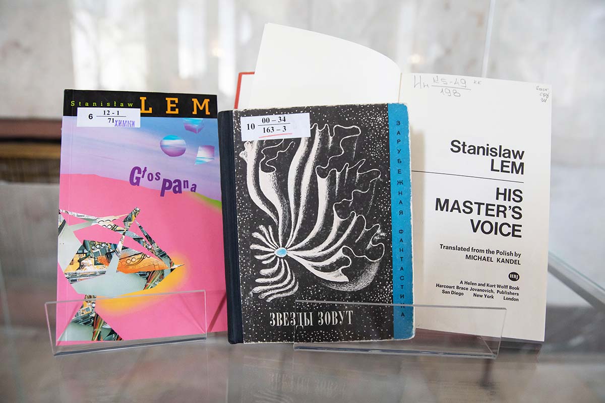 Экспозиция, включающая в себя не только печатные издания Станислава Лема, но и дополнительный иллюстративный материал из отдела изоизданий, позволяет в полной мере познакомиться с творческим наследием великого польского писателя.