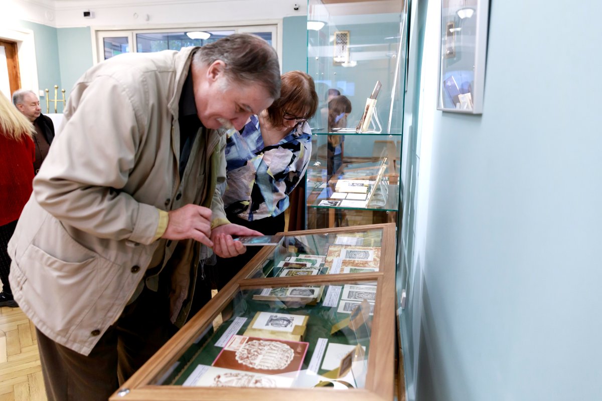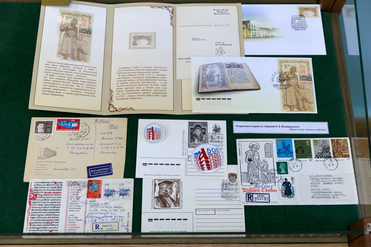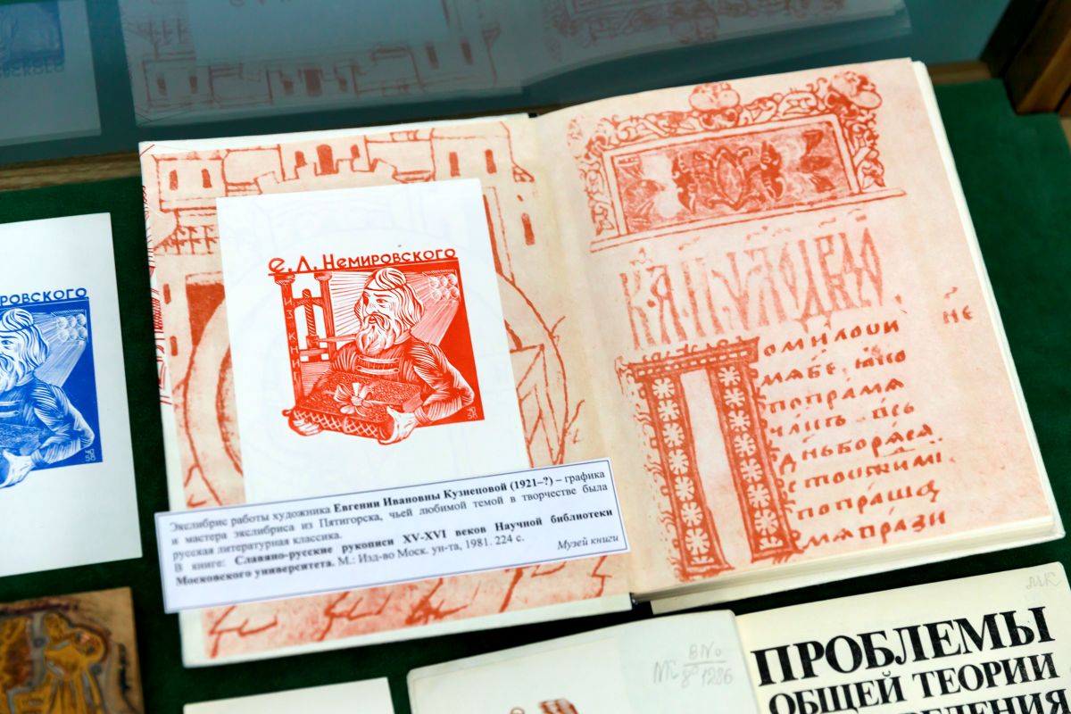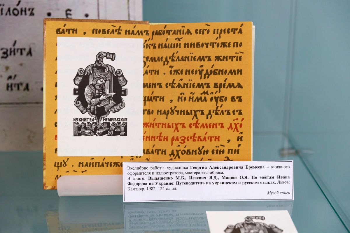 Экспозиция представляет Евгения Львовича не только как выдающегося книговеда и историка книги, но и — что необычно — как собирателя разнообразных и занимательных артефактов — экслибрисов, открыток, марок, значков, закладок и пригласительных билетов книжной тематики.
