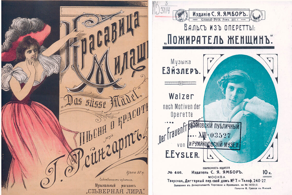 Романсы и пьесы, представленные на выставке из фонда нотных изданий и звукозаписей, стали своеобразным музыкальным рассказом о жизни милых дам, об их радостях и горестях, кокетливых капризах и несбывшихся мечтаниях. Композиторы выразительными музыкальными средствами с чувством юмора создавали изящные и утончённые образы женщин XIX века, отсюда и названия сочинений: салонная пьеса «Две кокетки», вальс «Петербургская красотка», шансонетка «Шалунья», мазурка «Обворожительница» и многие другие. Разнообразие жанров подчёркивало всё многообразие женских портретных зарисовок и вдохновляло поэтов на конкретные характеристики и сюжеты. Так, например, в популярной песенке «Это девушки все обожают» из оперетты «Мотор любви» немецкого композитора Жана Жильбера есть такие строки: «В жизни ваш девиз: собственный каприз».