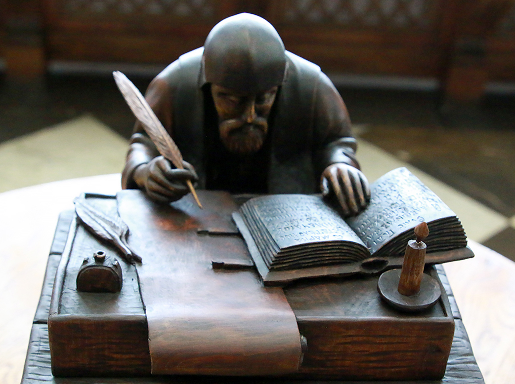 Деревянная скульптура «Калужский летописец». Автор Валерий Баранов, член Калужского отделения Союза художников России. Фото: Мария Говтвань, РГБ