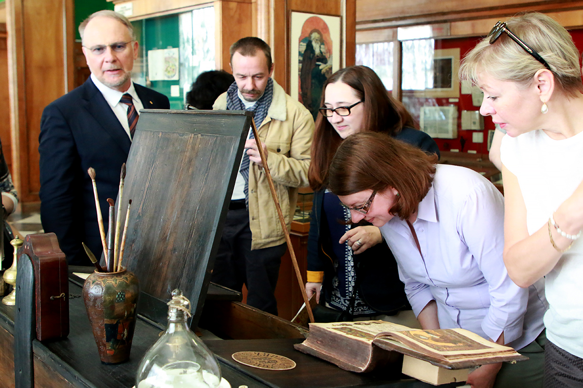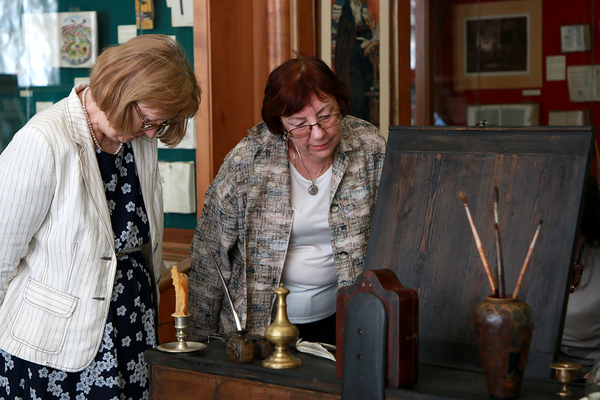 Вписать мини-выставку «Обиход писца» в экспозицию Музея книги РГБ Сергею Ивановичу помогли сотрудники музея — главный хранитель фондов сектора музейной и выставочной работы Нина Викторовна Чаленко и заведующая сектором музейной и выставочной работы Мария Борисовна Золотова.