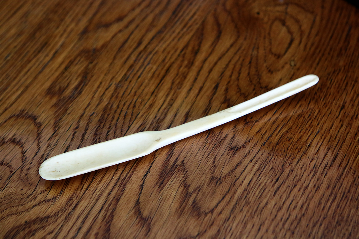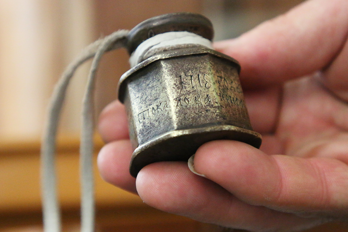 — Обязательно. На языке искусства это называется «провенанс». Как правило, такая история есть. Но бывает, что предмет найден при раскопках, в огороде, в лесу. Он привязан к местности, а не к конкретному человеку. Тогда приходится обращаться к источникам, искать, разбираться. Я эксперт, поэтому мне это очень интересно — найти корни, понять технику изготовления, узнать автора. Иногда всё остаётся на уровне предположения, но иногда удаётся узнать точно. Например, вот эта чернильница. На ней написано: «1718 году, сына Токалова Родиона Васильева». Это единственная в России чернильница, на которой написано само слово «чернильница» и указано точно, чья она и когда сделана.