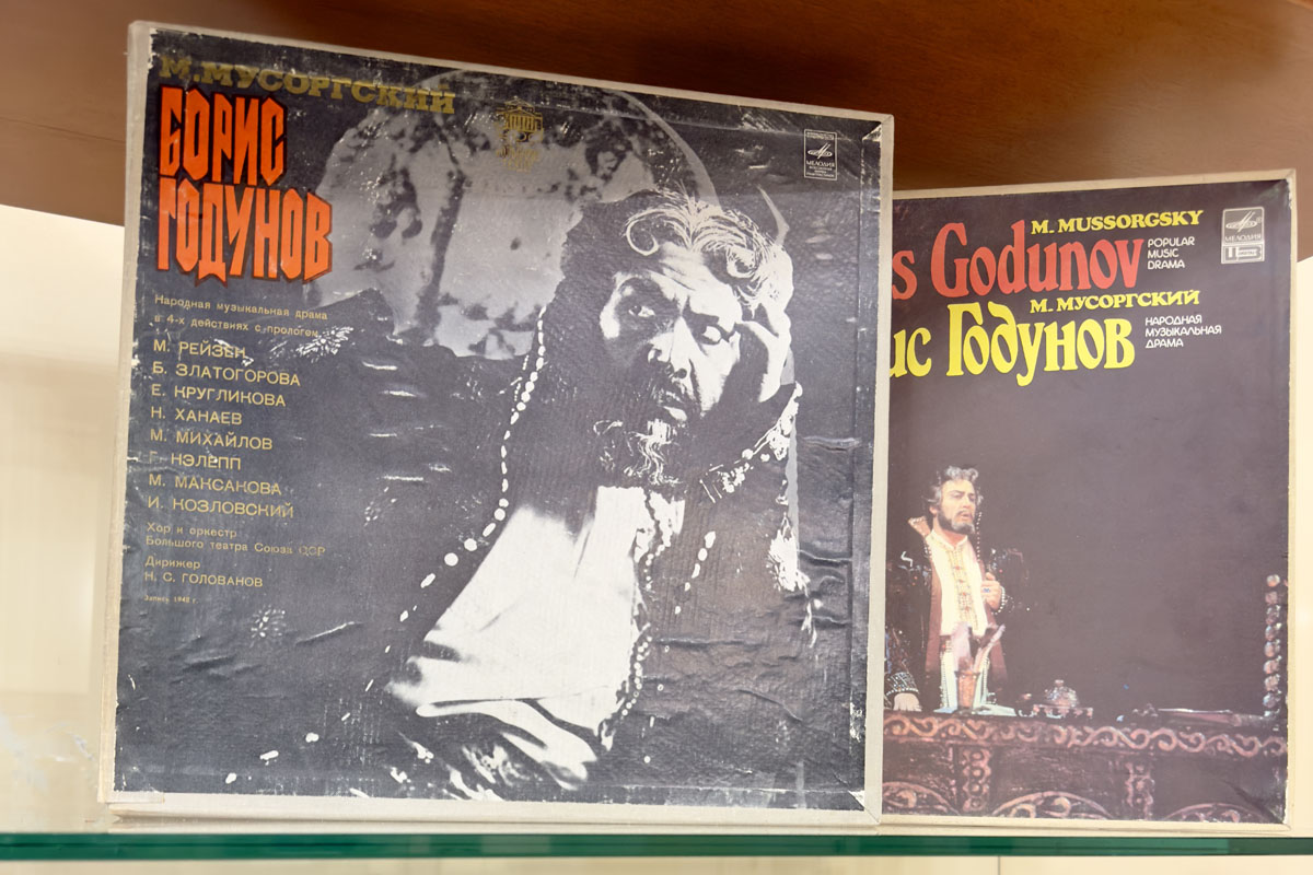 На выставке в отделе нотных изданий и звукозаписей можно познакомиться с грамзаписями фирмы «Мелодия» за разные годы и с разными исполнителями. Среди них — Фёдор Шаляпин (бас), Сергей Лемешев (тенор), Иван Ершов (драматический тенор), Мария Славина (меццо-сопрано), Владимир Касторский (бас), Бэла Руденко (лирико-колоратурное сопрано), Галина Вишневская (сопрано), Павел Хохлов (баритон), Пантелеймон Норцов (баритон), Медея Фигнер (сопрано).