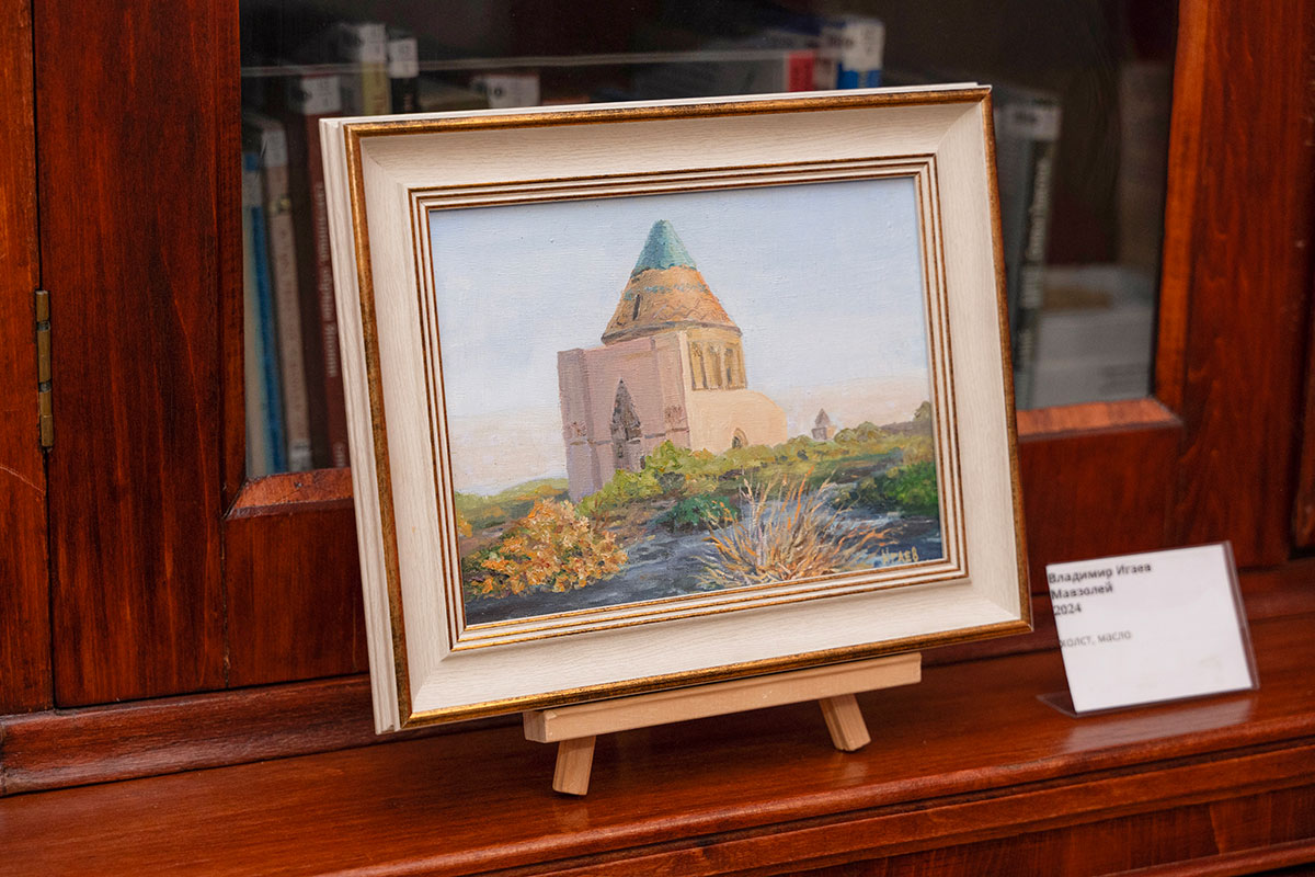 Художественную часть выставки составляют работы современных российских и туркменских художников. Живопись, графика и скульптура дают возможность зрителю окунуться в атмосферу туркменских пейзажей, поэтических образов и сюжетов, которые встречаются и у Махтумкули, и у других поэтов и философов Востока.
