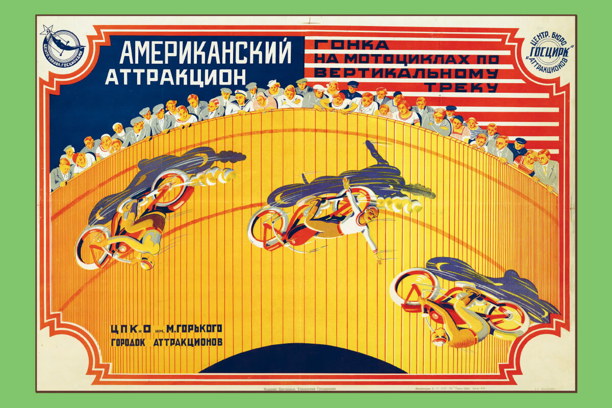 Неотъемлемыми спутниками беззаботной летней жизни оставались вполне традиционные формы «индустрии развлечений» городских жителей — эстрада, кино, фокусы — и азартные соревнования: бега и скачки, получившие полноценное воплощение в рекламных плакатах.