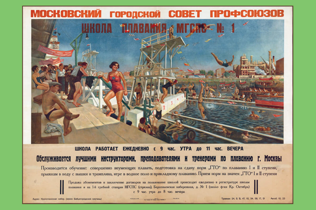 В Розовом зале Российской государственной библиотеки проходит выставка советских плакатов 30—50-х годов из фондов отдела изоизданий «Под сенью „девушки с веслом“», посвящённая культуре отдыха и спорта.
