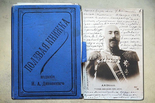В Румянцевском зале всего неделю открыта интереснейшая выставка, посвященная 110-летней годовщине начала Русско-японской войны. На стендах в Доме Пашкова личные дневники и боевые журналы генералов Алексея Николаевича Куропаткина и Михаила Васильевича Алексеева, телеграмма Николая II, записные книжки Анатолия Михайловича Стесселя, фотографии и воспоминания рядовых участников войны. Образованность и пунктуальность русских офицеров, подробно фиксировавших ход боевых действий и ведущих личные дневники, сослужила добрую службу и потомкам. Благодаря этим документам, мы можем составить полное представление как о характере боевых диспозиций, так и о мыслях и чувствах их участников. Экспозиция начинается с документов из архива Генерального штаба генерала от инфантерии Михаила Васильевича Алексеева, для которого Русско-японская война 1904—1905 годов была не первой и не последней. Тем не менее в его архиве , в 1990-х годах подаренном отделу рукописей РГБ дочерью генерала Верой Михайловной Алексеевой-Борель, сохранились его военные письма, дневник воспоминаний об осаде Порт-Артура, фотографии и записки, доносящие до нас настроение и мысли крупнейшего военного авторитета страны того времени.