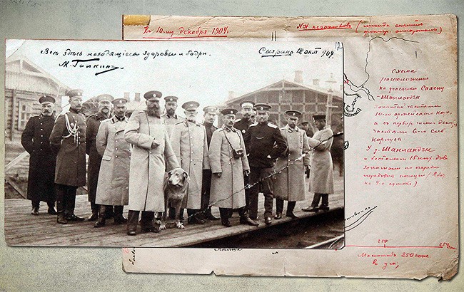 Рядом с записками генералов — личные документы рядовых участников войны: дневники солдата Ивана Семеновича Столярова «Описание всей моей минувшей жизни» , где записи сопровождались подробными чертежами, «Мои откровенные воспоминания (о войне с Японией)» подполковника Антона Опенховского . Очень интересные документы хранятся в фонде Михаила Сергеевича Галкина , который начал участие в Русско-японской войне в чине капитана. На фотографии в Румянцевском зале он стоит в кругу сослуживцев перед началом операции. «Все здесь находящиеся здоровы и бодры», — гласит надпись Михаила Сергеевича. Галкин дослужился до чина генерал-майора и после войны преподавал в Александровском военном училище. Он оставил интересные записки и дневники, в которых, в частности, подробно анализирует и сравнивает японскую и русскую тактики ведения войны. «Японцы: широкое пользование пулеметами. Русские: весьма малое пользование пулеметами, вещь новая и мало знакомая. Японцы: начиная бой, прибегают к продолжительной артиллерийской подготовке. Русские: начиная бой, далеко не пользуются всей силой артиллерии, пехота идет в атаку, когда неприятельская артиллерия далеко не ослабела, результат: смертельные потери». Кроме своих записок и книги «Хейгоутай — Сандепу с 12 по 15 января 1905 года», Михаил Сергеевич перевел с немецкого книгу полковника Гедке «Очерки Русско-японской войны 1904—1905 гг.», автограф которой можно увидеть в Румянцевском зале.