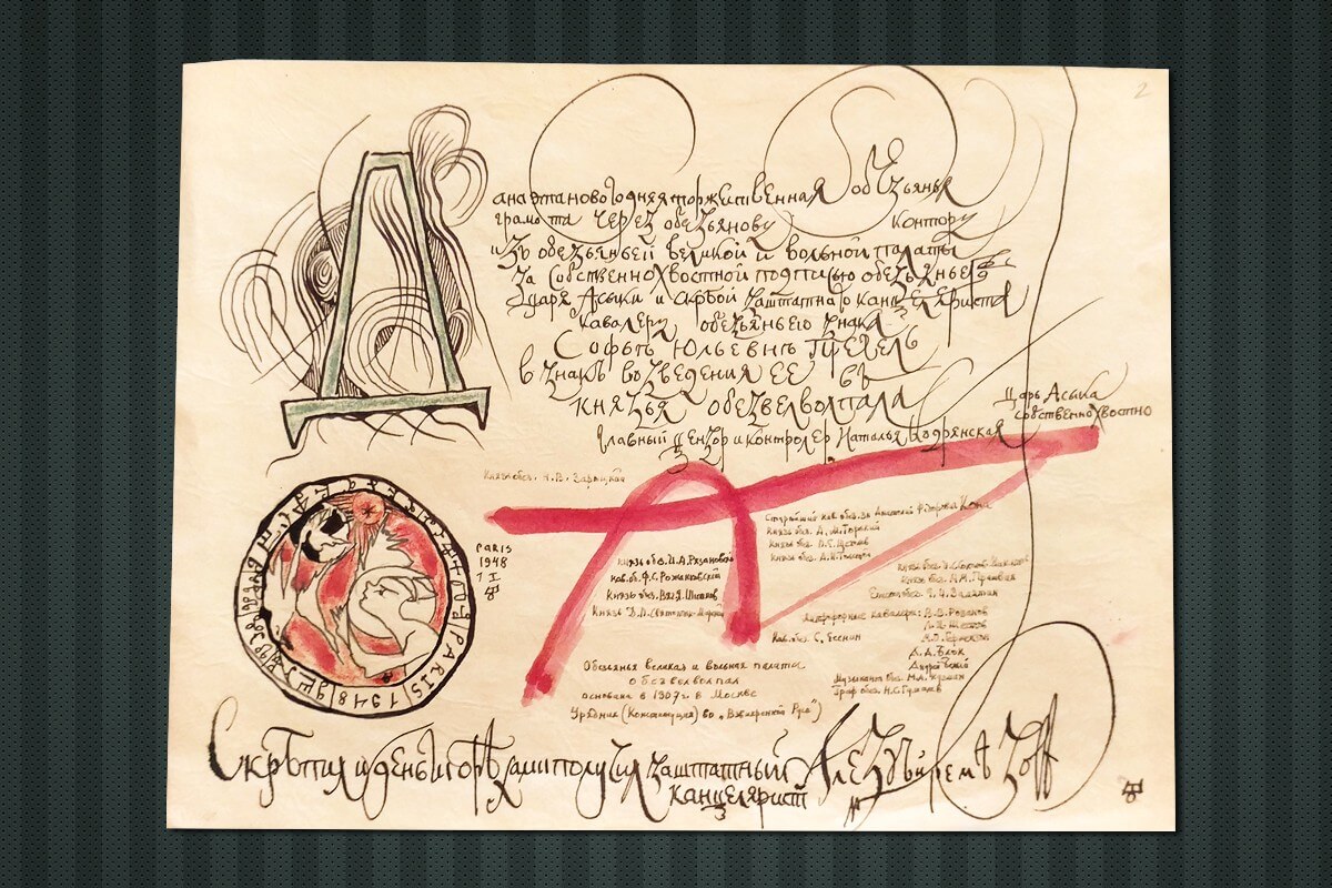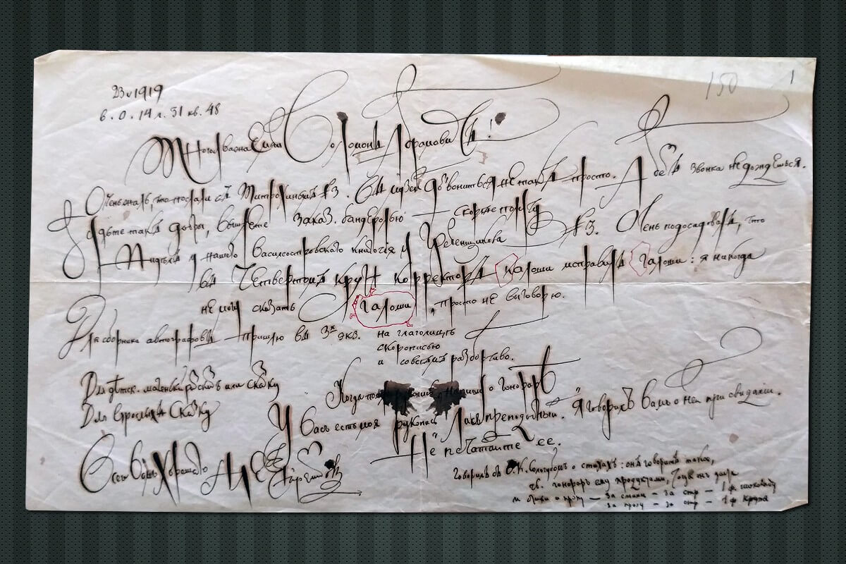 Вы познакомитесь и с Ремизовым-исследователем. Алексея Михайловича интересовала скоропись. Он находил и покупал столбцы XVII века, расшифровывал их и издавал в периодической печати. Скорописи отведена витрина в каталожной комнате отдела рукописей.