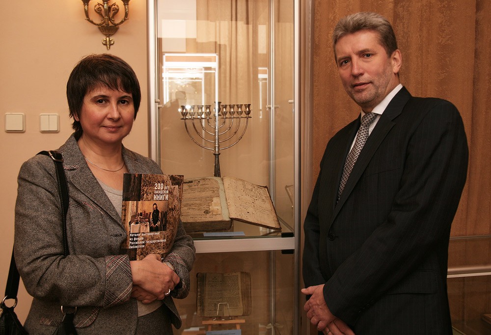 На церемонии торжественного открытия выступил генеральный директор библиотеки Александр Вислый, который упомянул о двух важных событиях предшествовавших организации выставки. Это — вынесенное судом в Вашингтоне решение о передаче принадлежащих РГБ книг из коллекции Любавического ребе Йосефа Ицхака Шнеерсона иудейскому движению «Хабад Любавич» и принятие Государственной Думой РФ в третьем, окончательном чтении закона об имуществе религиозного назначения, находящегося в государственной собственности. Этот закон запрещает передавать музейные предметы и коллекции, входящие в состав Музейного фонда России, а также документы, входящие в состав Архивного фонда России или Национального библиотечного фонда. Таким образом, законодательства двух стран вошли в противоречие. «При этом важно понимать, что когда книга находится в национальной библиотеке, она доступна любому человеку, гражданином какой бы страны он ни был. Передавая книги какой-либо организации, мы тем самым ухудшаем качество жизни населения России», — сказал в своем выступлении Александр Вислый.