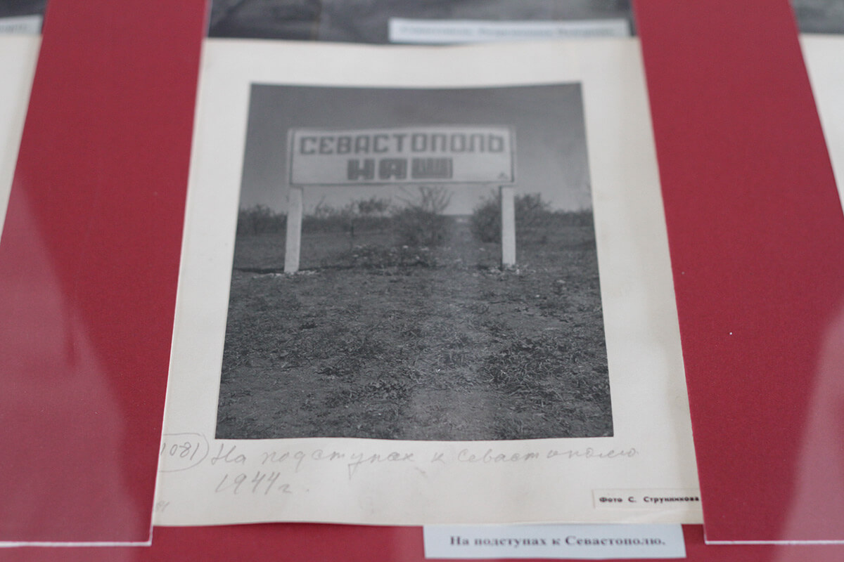 На выставке экспонируется уникальный корпус оригиналов фотографий известного военного фотокорреспондента газеты «Правда» Сергея Николаевича Струнникова из фонда отдела изоизданий РГБ. Они документально фиксируют продвижение советских войск к Севастополю, портреты людей, освобождавших его, показывают грандиозные разрушения в городе и судьбу тех, кто пытался его завоевать. Снимки этого фоторепортажа, сделанные в апреле-мае 1944 года, стали практически последними в творчестве фотохудожника — он погиб в бою в июне 1944 года.
