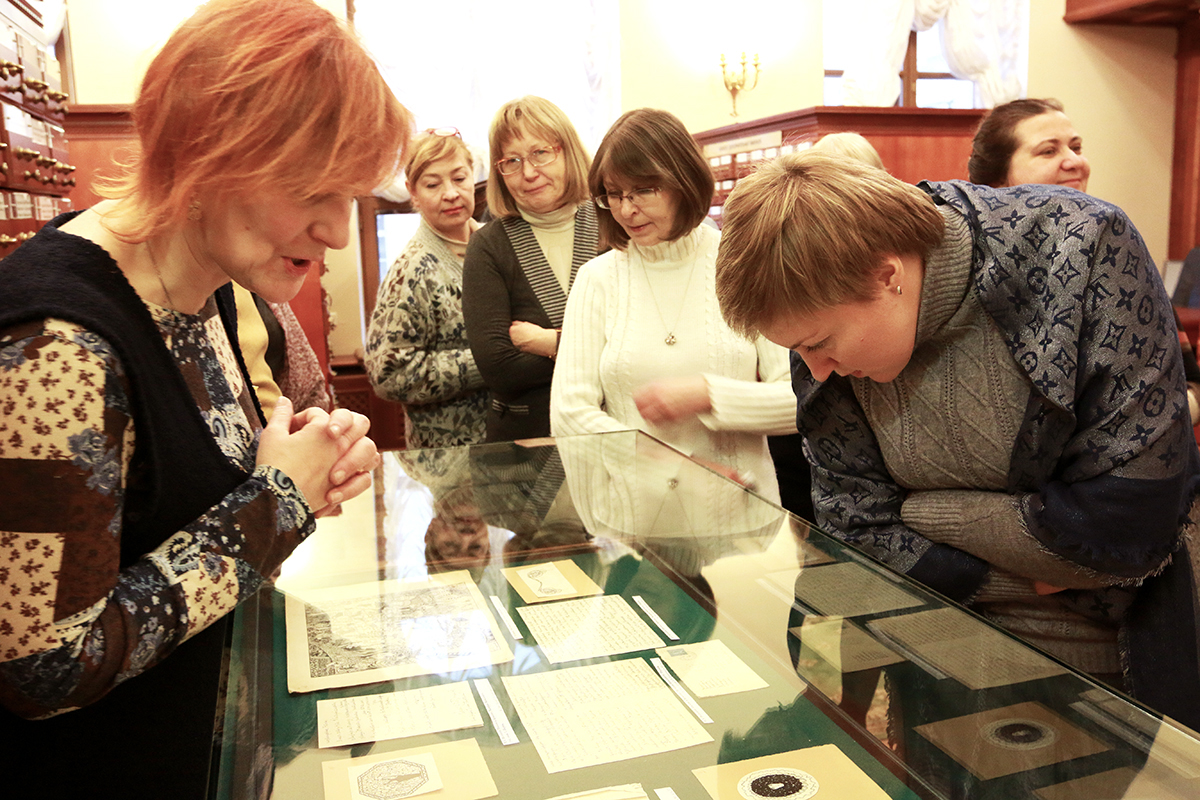 Выставку открывают заместитель генерального директора РГБ по внешним связям и выставочной деятельности Наталья Юрьевна Самойленко и Виктор Фёдорович Молчанов, заведующий отделом рукописей