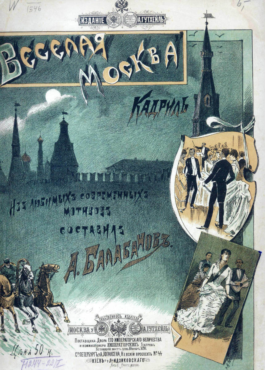 Балабанов, Алексей. Веселая Москва : кадриль из любимых современных мотивов : для фортепиано. Москва, [после 1872].