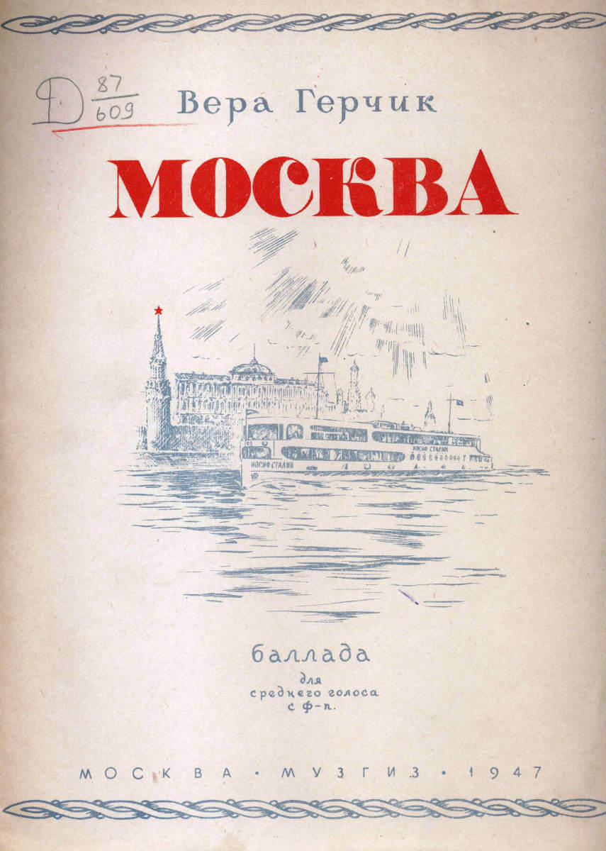 Герчик, Вера Петровна. Москва : баллада : для среднего голоса с сопровождением фортепиано. Москва, 1947.