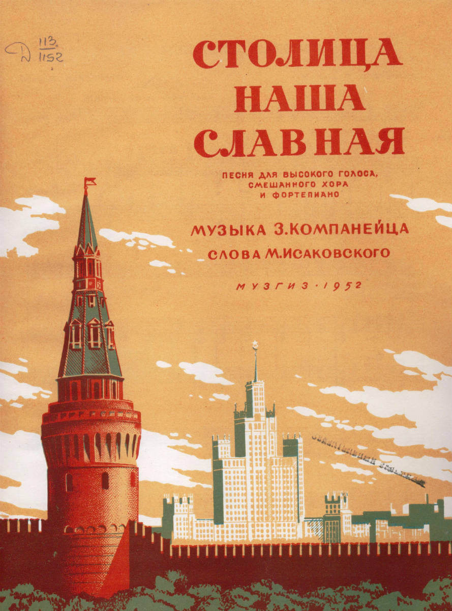 Компанеец, Зиновий Львович. Столица наша славная Песня для высокого голоса, смешанного хора и фортепиано / слова М. Исаковского. Москва, 1952.