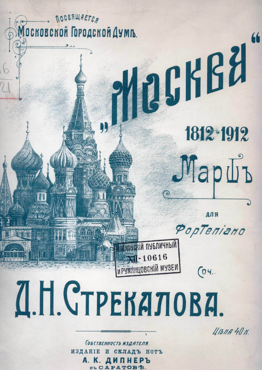 Стрекалов, Д.Н. Москва 1812-1912 : марш для фортепиано с надписанным текстом. Саратов, [1912] - 3 с