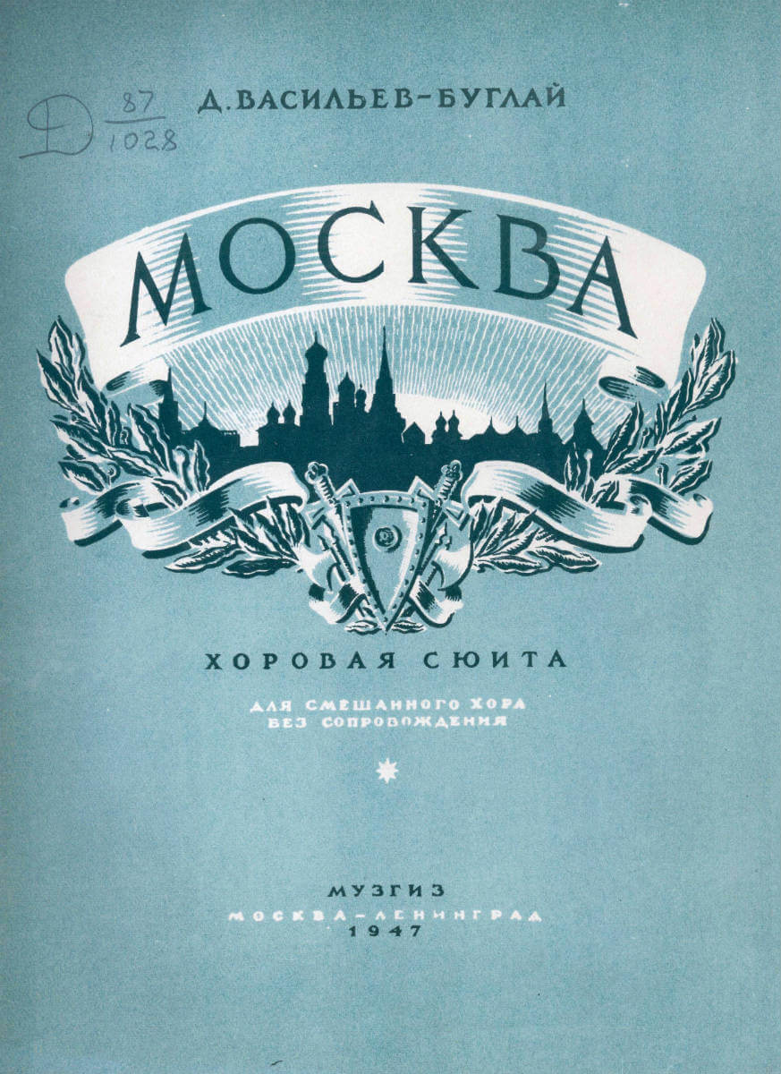 Васильев-Буглай, Дмитрий Степанович. Москва : хоровая сюита : для смешанного хора без сопровождения. – Москва ; Ленинград, 1947. – Посвящается 800-летию Москвы.