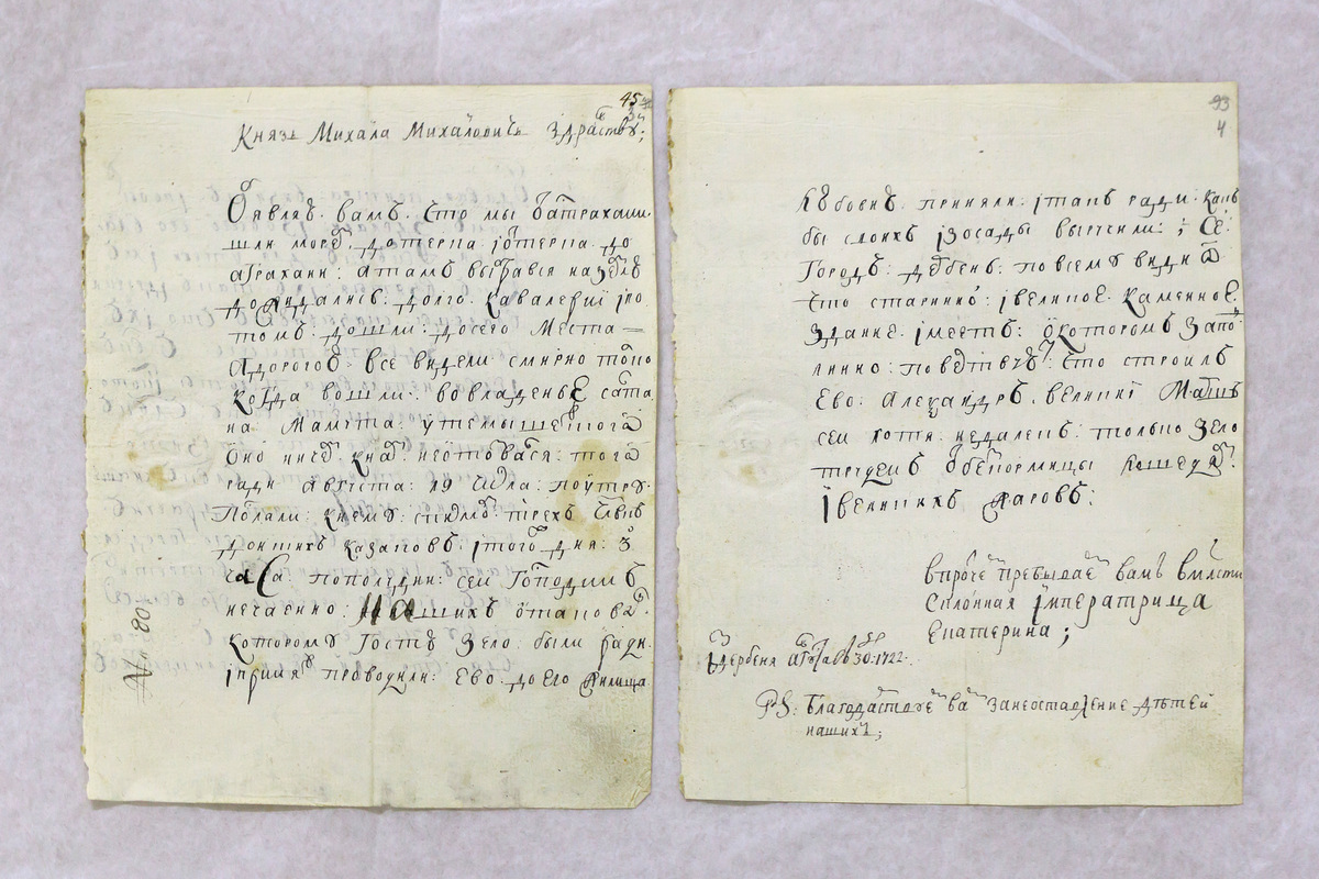 • Письмо Екатерины, супруги Петра I, ко князю Михаилу Михайловичу Голицыну. 30 августа 1722 года