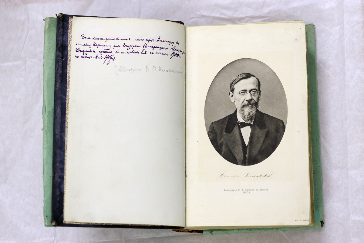 В издании: Пособие по русской истории Василия Осиповича Ключевского. Курс лекций от начала Руси до царствования Александра II включительно. Экземпляр, поднесённый императрице Александре Фёдоровне — младшей. Литография. Конец XIX — начало ХХ века