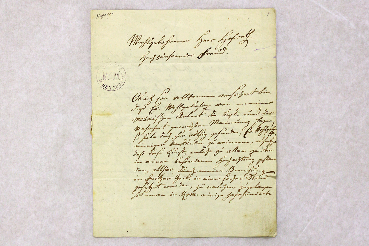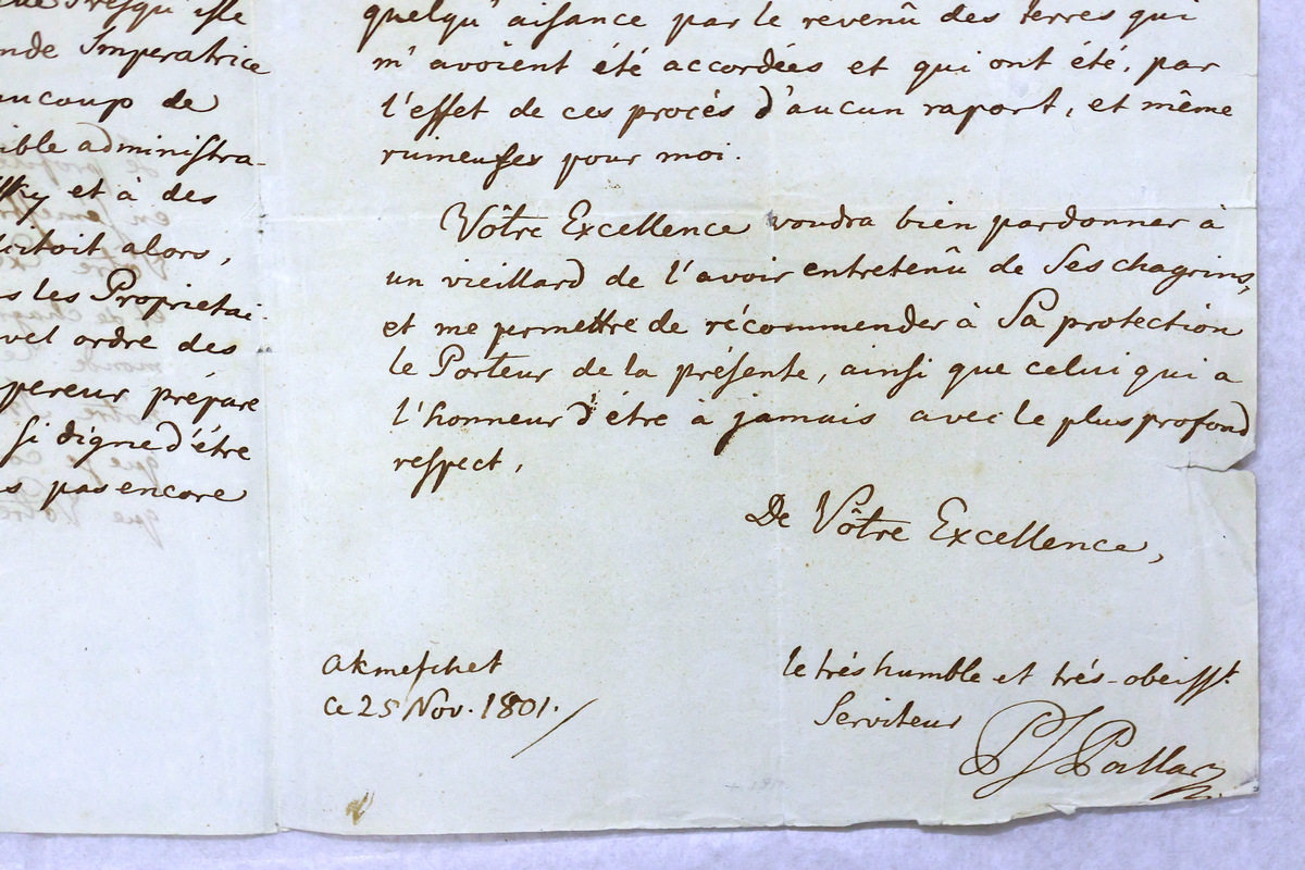 • Письмо Петра Симона Палласа к Николаю Ивановичу Салтыкову. 25 ноября 1801 года. На французском языке