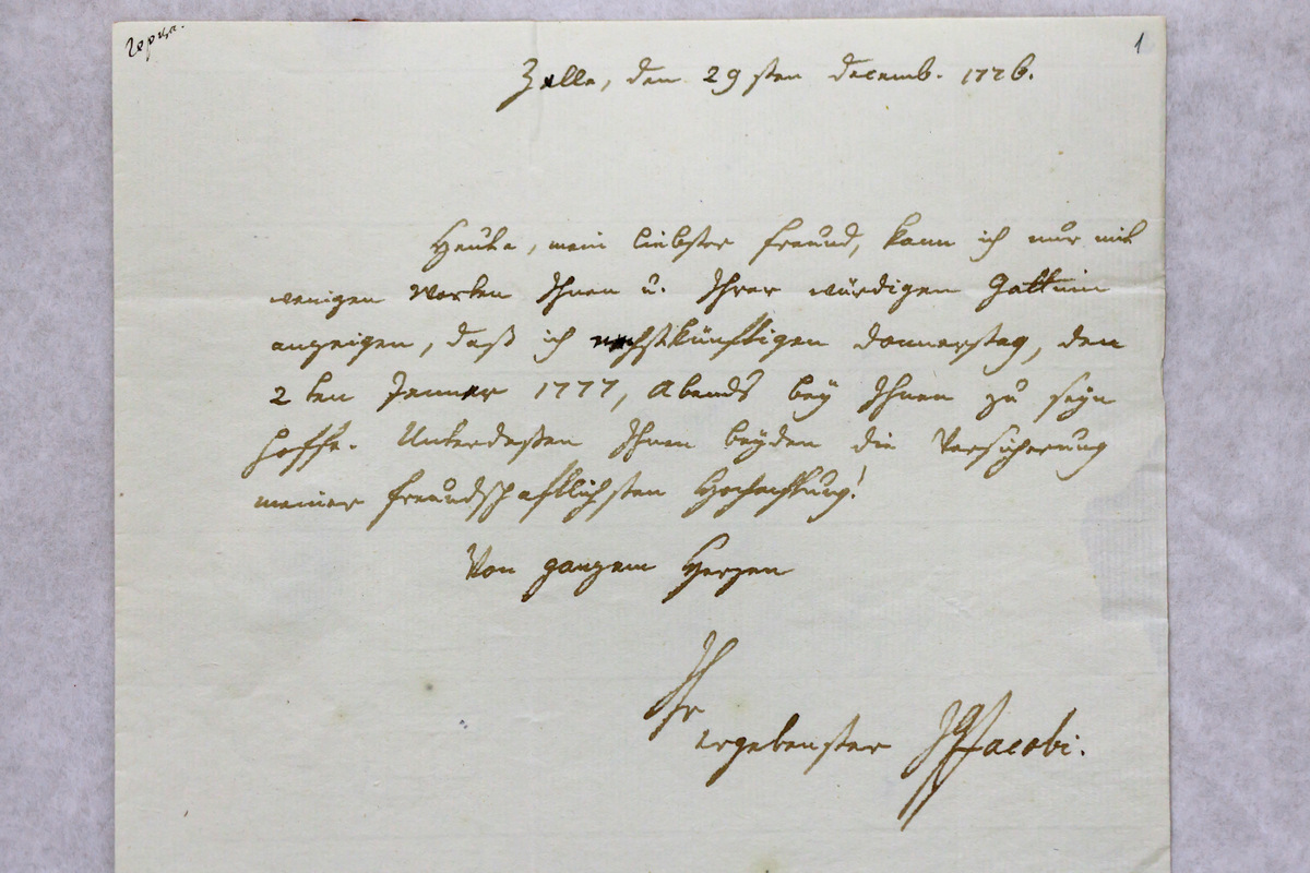 • Письмо Фридриха Генриха Якоби к профессору Иоганну Якобу Эберту. 29 декабря 1776 года. На немецком языке
