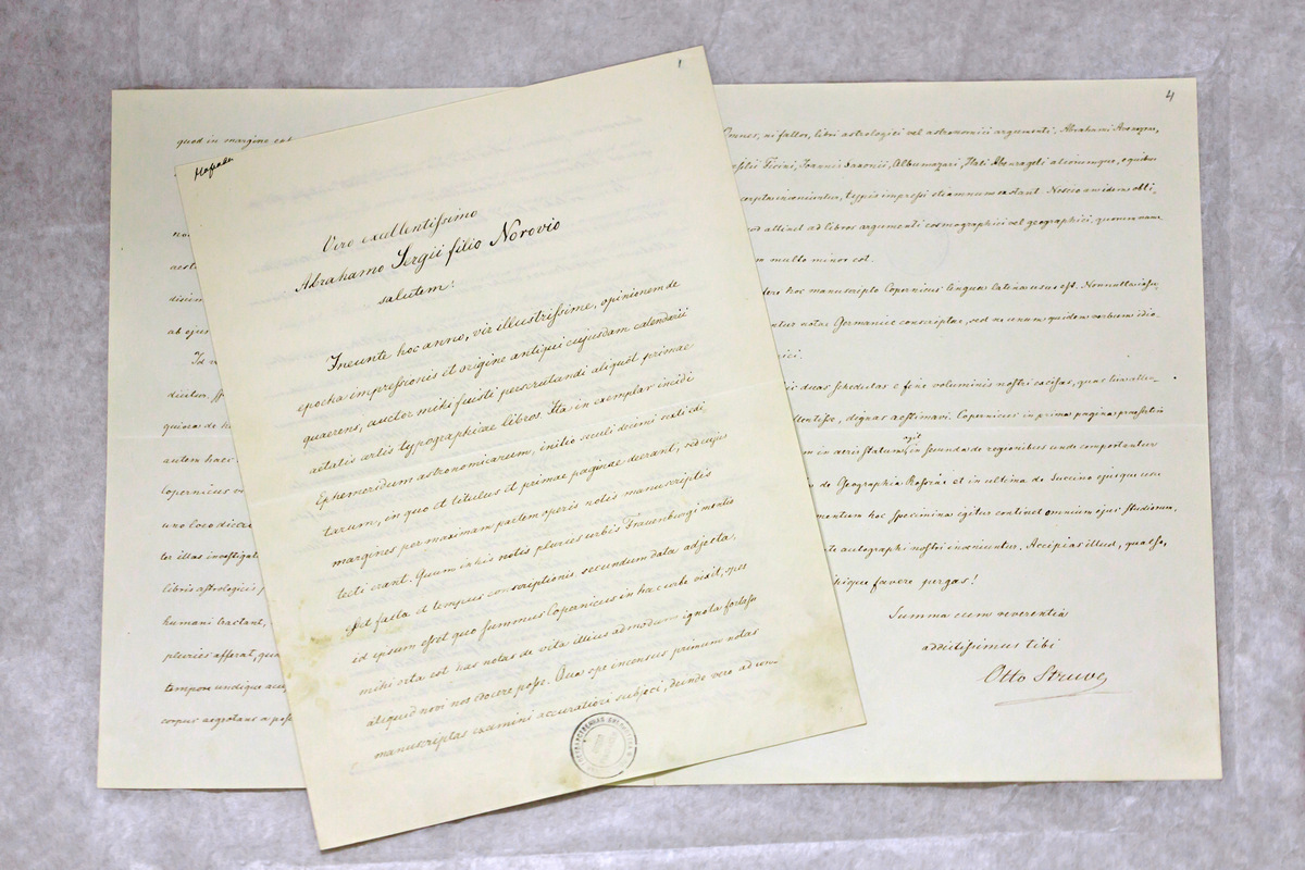 • Письмо Отто Васильевича Струве к Аврааму Сергеевичу Норову. 10 мая 1852 года. На латинском языке
