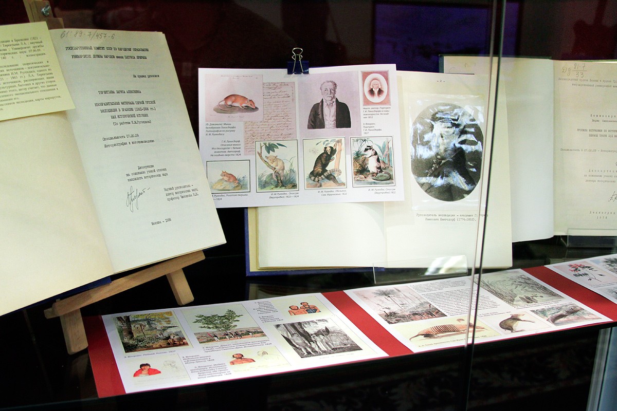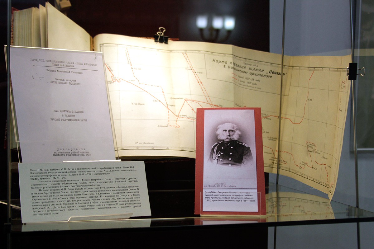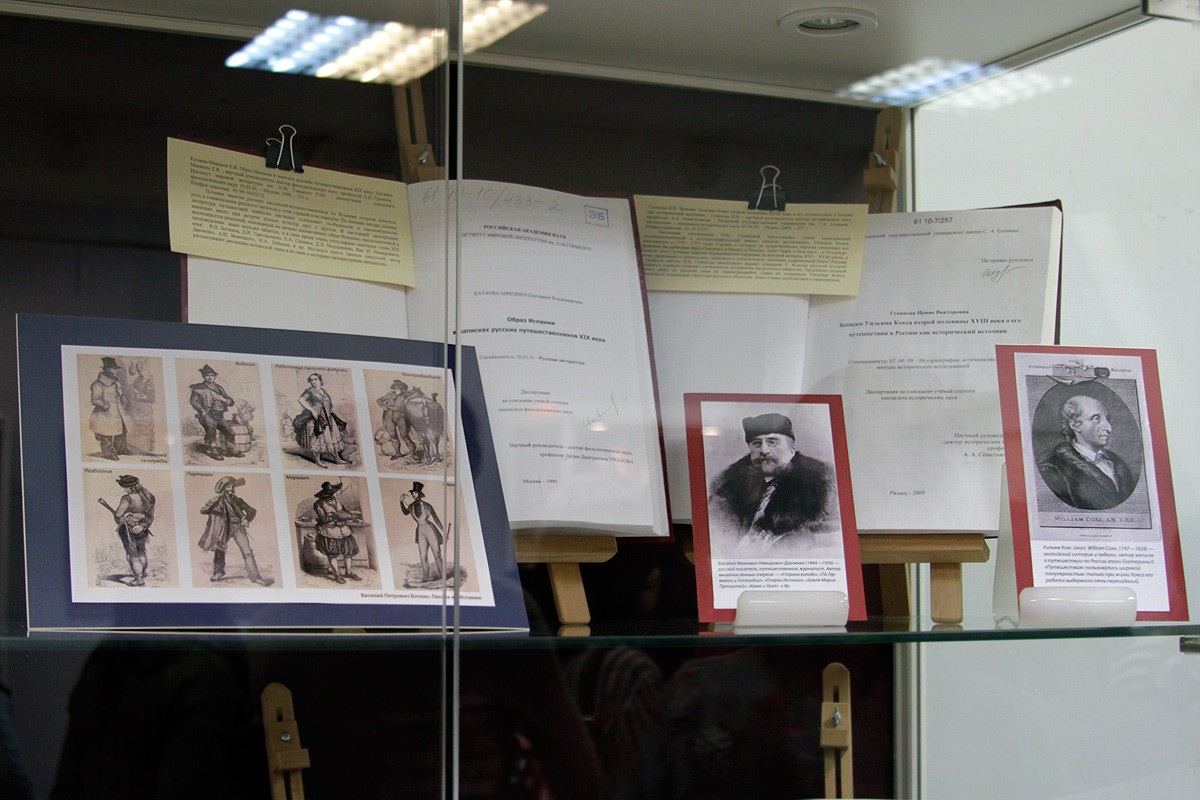 Ряд диссертаций связан с именами великих путешественников и первооткрывателей, таких как Николай Николаевич Миклухо-Маклай, Владимир Клавдиевич Арсеньев, Федор Петрович Литке. «Выставка напоминает не только о широко известных именах, но и для кого-то откроет новые — например, Алексей Ильич Чириков, который вместе с Берингом совершал экспедиции и открыл северо-западные берега Америки», — рассказала заведующая отделом диссертаций РГБ Ирина Львовна Сакирко. Среди диссертаций путешественников по земле есть работы и путешественников в космосе — в частности, диссертация летчика-космонавта Георгия Михайловича Гречко «Оптические исследования земной атмосферы, ионосферы и астрофизических объектов с пилотируемых станций "Салют"». Выставку украшают многочисленные артефакты, в том числе из личной коллекции заведующей отделом диссертаций Ирины Сакирко: образцы аммонитов возраста более 60 млн лет, конкреции, найденные во время научной экспедиции на полуостров Мангышлак в Казахстане, лунный измерительный комплекс (ЛИК). Многие работы имеют уникальные приложения: рукописные карты, фотографии, письма, рисунки, сделанные исследователями во время путешествий. Например, кандидатская диссертация Бориса Николаевича Комиссарова посвящена изучению материалов экспедиции в Бразилию российского исследователя, натуралиста и этнографа Григория Ивановича Лангсдорфа. Основные положения работы богато проиллюстрированы фотографиями рисунков Йоганна Морица Ругендаса, Эркюля Флоранса и Адриана Тонея, выдержками из дневников Лангсдорфа, отрывками из переписки между исследователями и документальными материалами, собранными в ходе экспедиции. Открывают выставку труды известных современных ученых. Например, кандидатская диссертация Анатолия Михайловича Сагалевича — специалиста в области технических средств подводных исследований, доктора технических наук, Героя Российской Федерации, лауреата премии правительства Российской Федерации 2013 года в области науки и техники. С 1965 года он работает в институте океанологии им. П. П. Ширшова Российской академии наук. В 1973 году Сагалевич успешно защитил кандидатскую диссертацию, в которой описал созданную им систему непрерывного сейсмического профилирования с электроискровым излучателем для изучения структуры осадочной толщи на дне океана, которая была установлена на все суда института. Ее применение позволило получить важные научные результаты в изучении морского дна протяженностью более 300 тысяч миль. На открытие выставки были приглашены современные исследователи и путешественники. Этнограф и мореход Владимир Щетанов показал учебный фильм о реконструкции древних поморских судов на Соловецких островах, в которой он принимает участие, а чукотский документалист Владимир Пуя познакомил собравшуюся аудиторию со своими работами, посвященными жизни оленеводов Чукотки. Выставка подготовлена отделом диссертаций РГБ совместно с отделом картографических изданий и выставочным отделом.