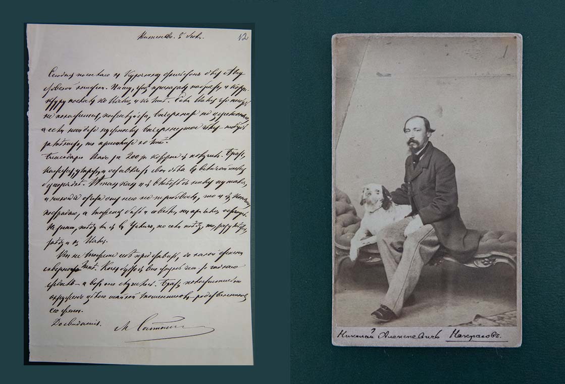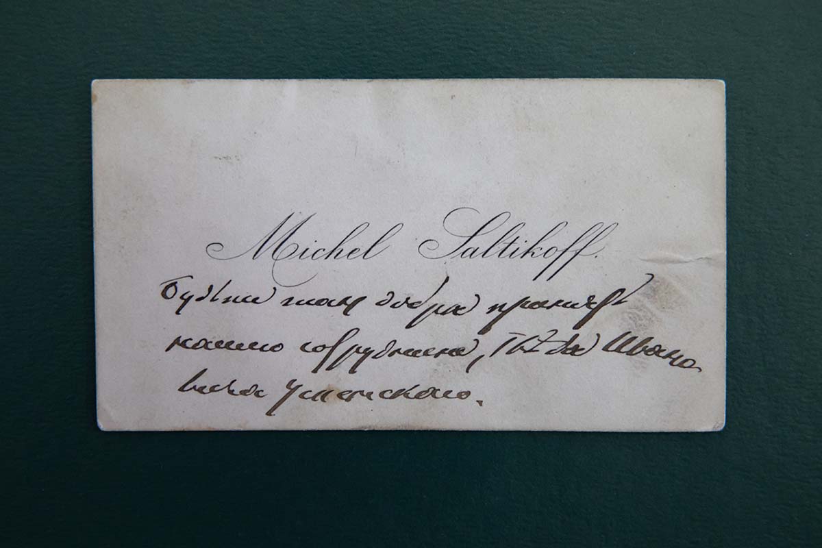 Михаил Евграфович Салтыков-Щедрин в 1848 году за вольнодумные настроения и публикации был сослан в Вятку, где занимал должность старшего чиновника особых поручений при Вятской губернии. По возвращении из ссылки писатель был причислен к Министерству внутренних дел, занимал должности вице-губернатора Рязани в 1858 году и Твери в 1860 году. Его общественная и творческая жизнь отразилась в переписке, представленной на выставке: в письмах Сергею Тимофеевичу Аксакову, произведения которого оказали влияние на творчество Салтыкова-Щедрина, врачу и общественному деятелю Николаю Андреевичу Белоголовому, писателю Константину Андреевичу Буху, редактору «Русской мысли» Виктору Александровичу Гольцеву, издателю журнала «Атеней» Евгению Фёдоровичу Коршу, редактору «Отечественных записок» Григорию Захаровичу Елисееву, писателям Дмитрию Наркисовичу Мамину-Сибиряку, Николаю Алексеевичу Некрасову. Не меньший интерес представляют и ответные письма Михаилу Евграфовичу от Алексея Николаевича Плещеева, Григория Захаровича Елисеева, Павла Васильевича Анненкова, Глеба Ивановича Успенского.