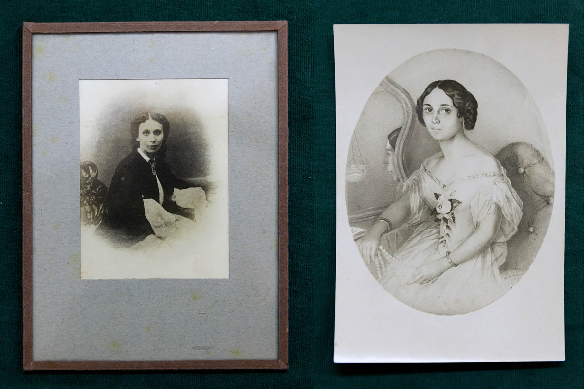 Справа: портрета Елены Александровны Денисьевой работы Иванова. 1850-е годов