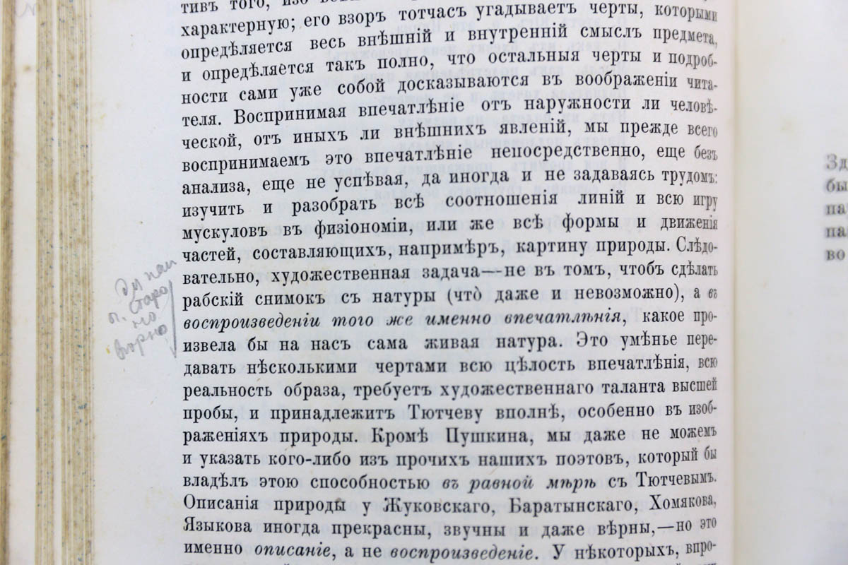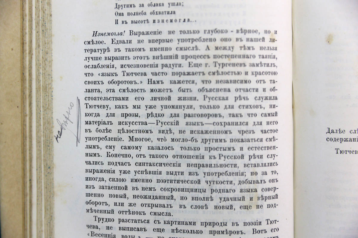 Пометы и подчёркивания Брюсова Валерия Яковлевича в книге «Сочинения Ф. И. Тютчева. Стихотворения и политические статьи» (Санкт-Петербург, 1886)