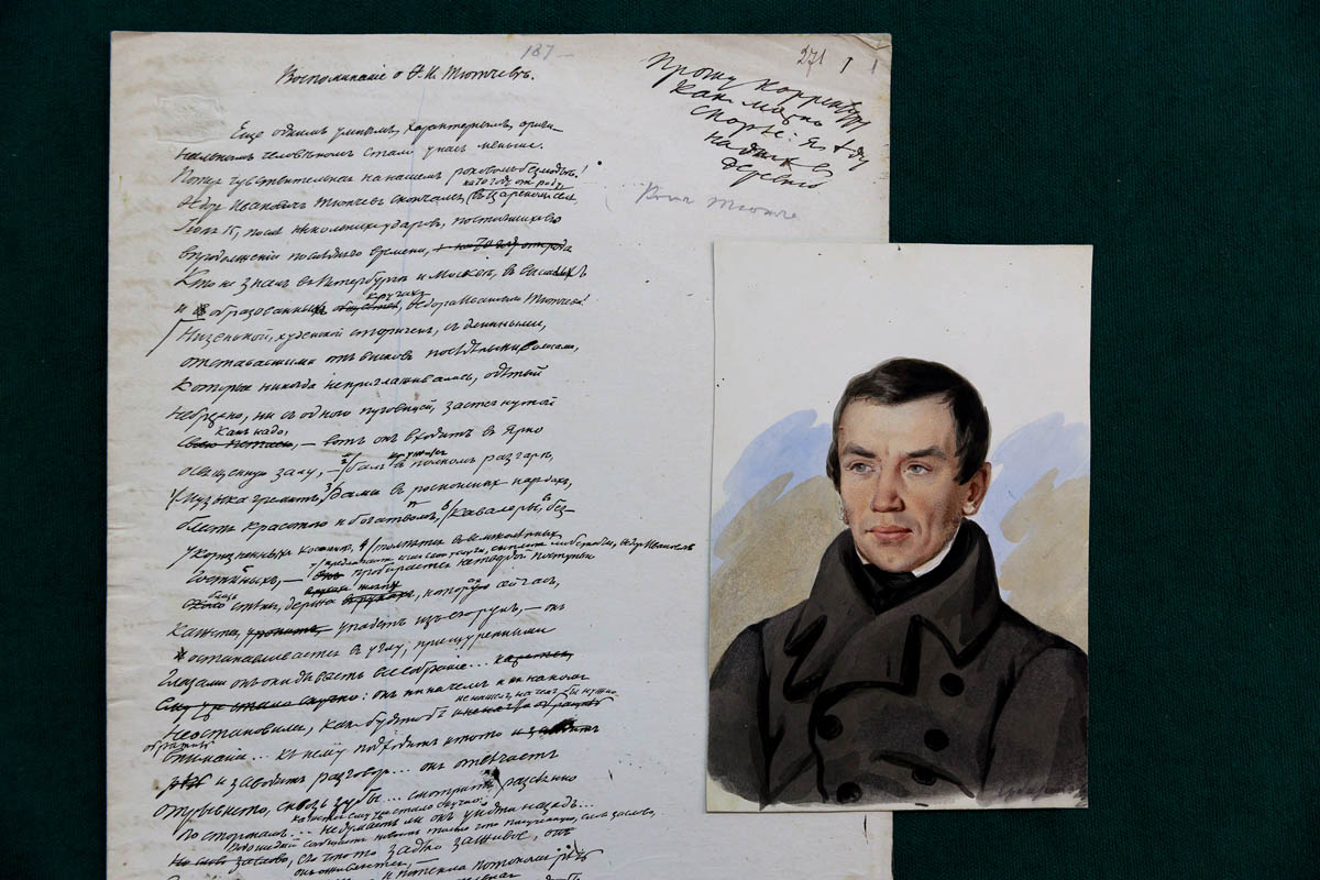 Жизнь и творчество Тютчева служили объектом для изучения многих поколений русских филологов и историков. На выставке будут представлены статьи Юрия Николаевича Тынянова «Тютчев и Гейне», Георгия Ивановича Чулкова «Жизнь Ф. И. Тютчева», «Тютчев и Аксаков в борьбе с цензурой» и другие.