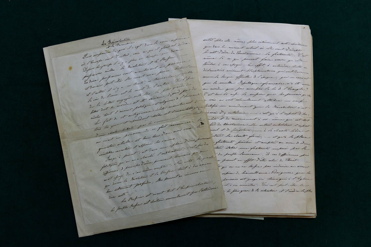 Политические статьи «Россия и Германия», «Россия и Запад», «Революция и Россия», написанные на французском языке, в автографах Фёдора Ивановича и списках, сделанных рукою его жены — Эрнестины Фёдоровны Тютчевой, составляют публицистический раздел выставки.