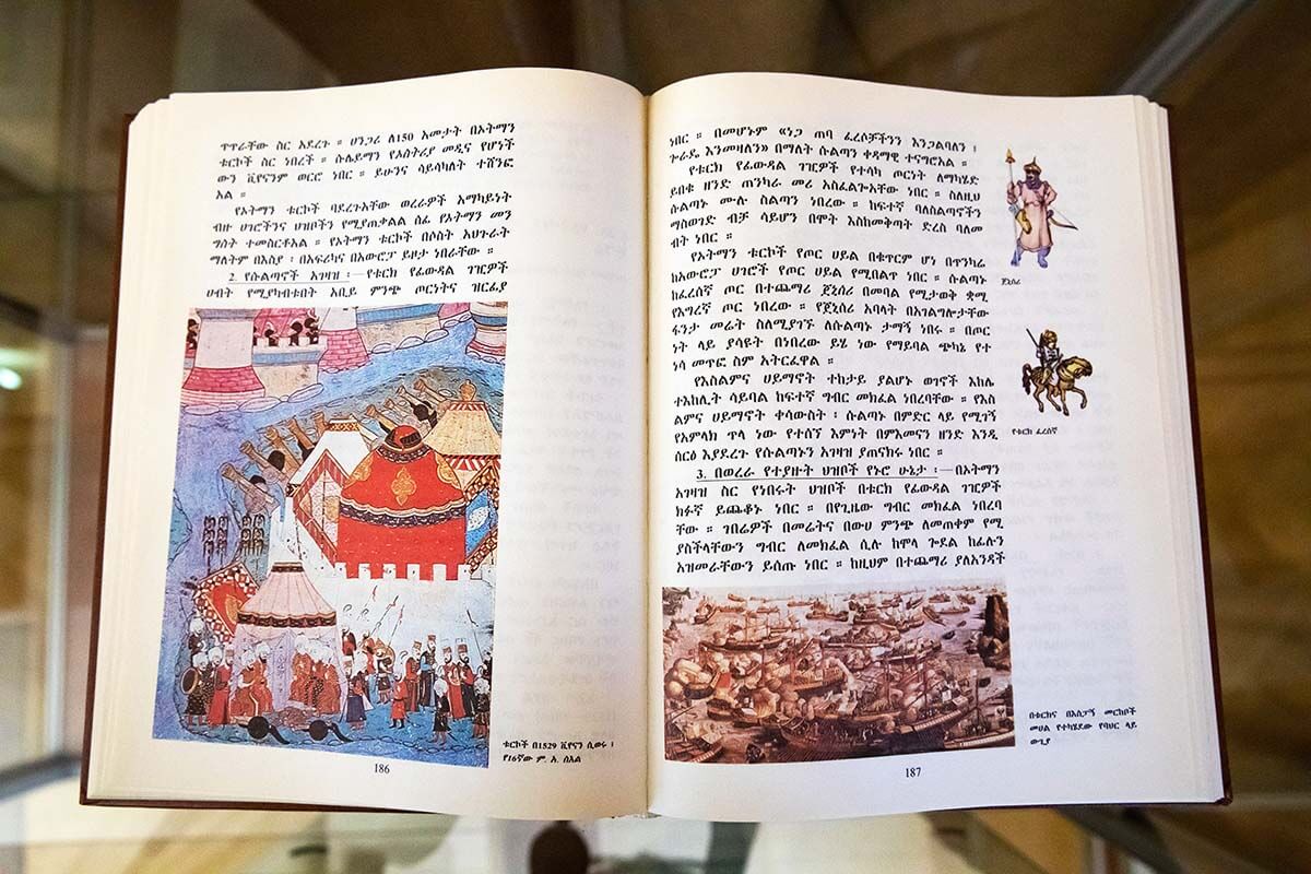 Книги разнообразны по тематике: история, учебная литература, грамматика, словари, языкознание и лингвистика, этнография, художественная литература. Экспонируются тексты в оригинальной графике. Есть также издания на английском и русском языках. Интересна и география изданий — кроме книг, изданных в различных африканских городах, есть книги, увидевшие свет в типографиях Берлина, Лондона, Москвы, Парижа, Рима.