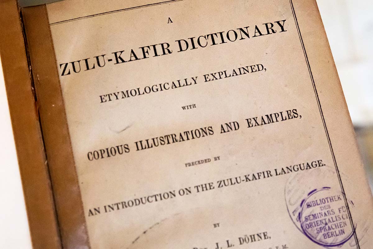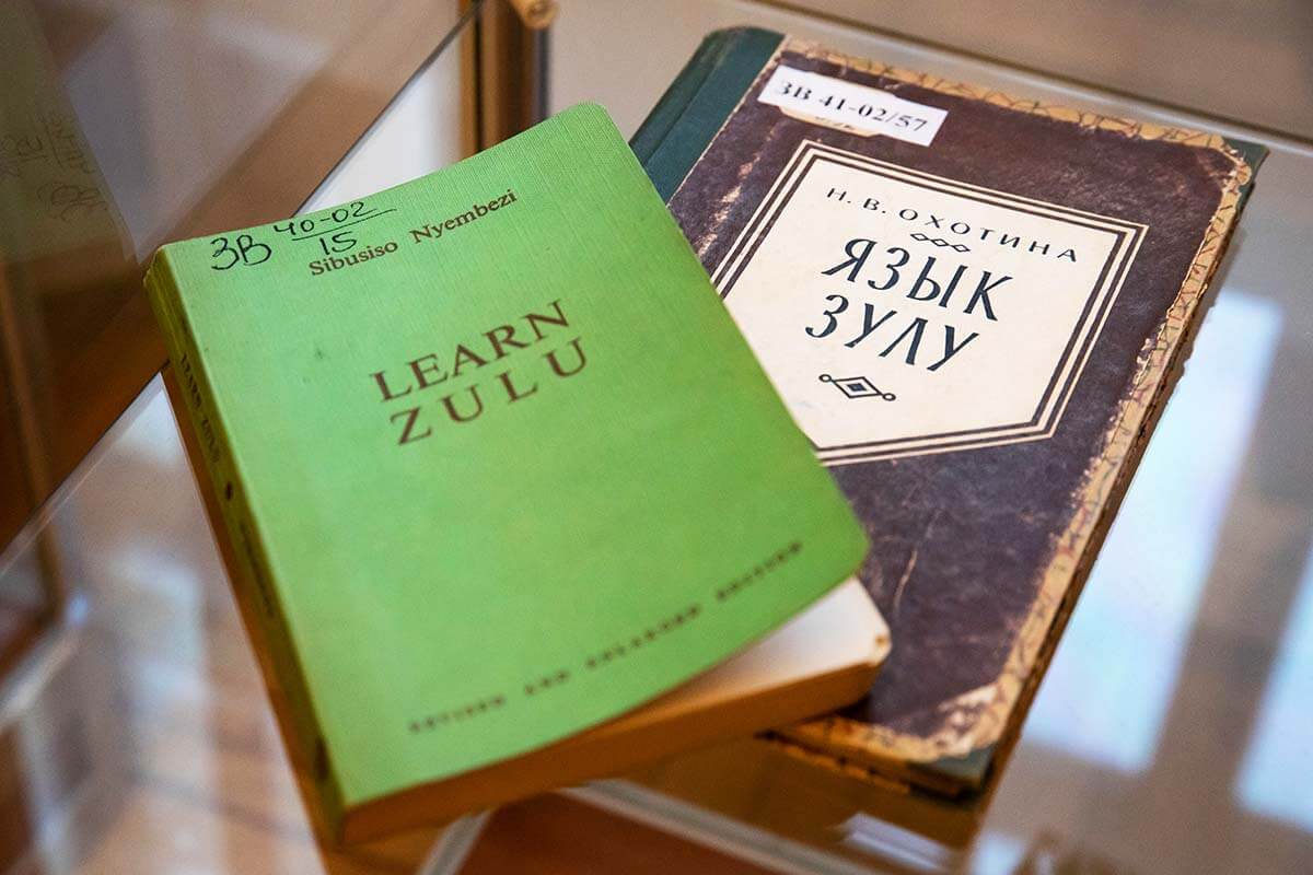 Среди самых ранних из представленных книг — «Изучение языка тсвана», изданное в Париже в 1841 году, и словари —  «Словарь зулу-кафир» Якоба Людвига Дёне (Кейптаун, 1857), «Зулу-английский словарь» Джона В. Коленсо (Питермарицбург,1861).