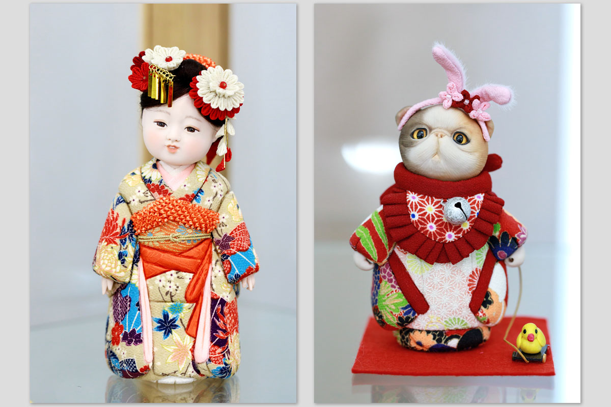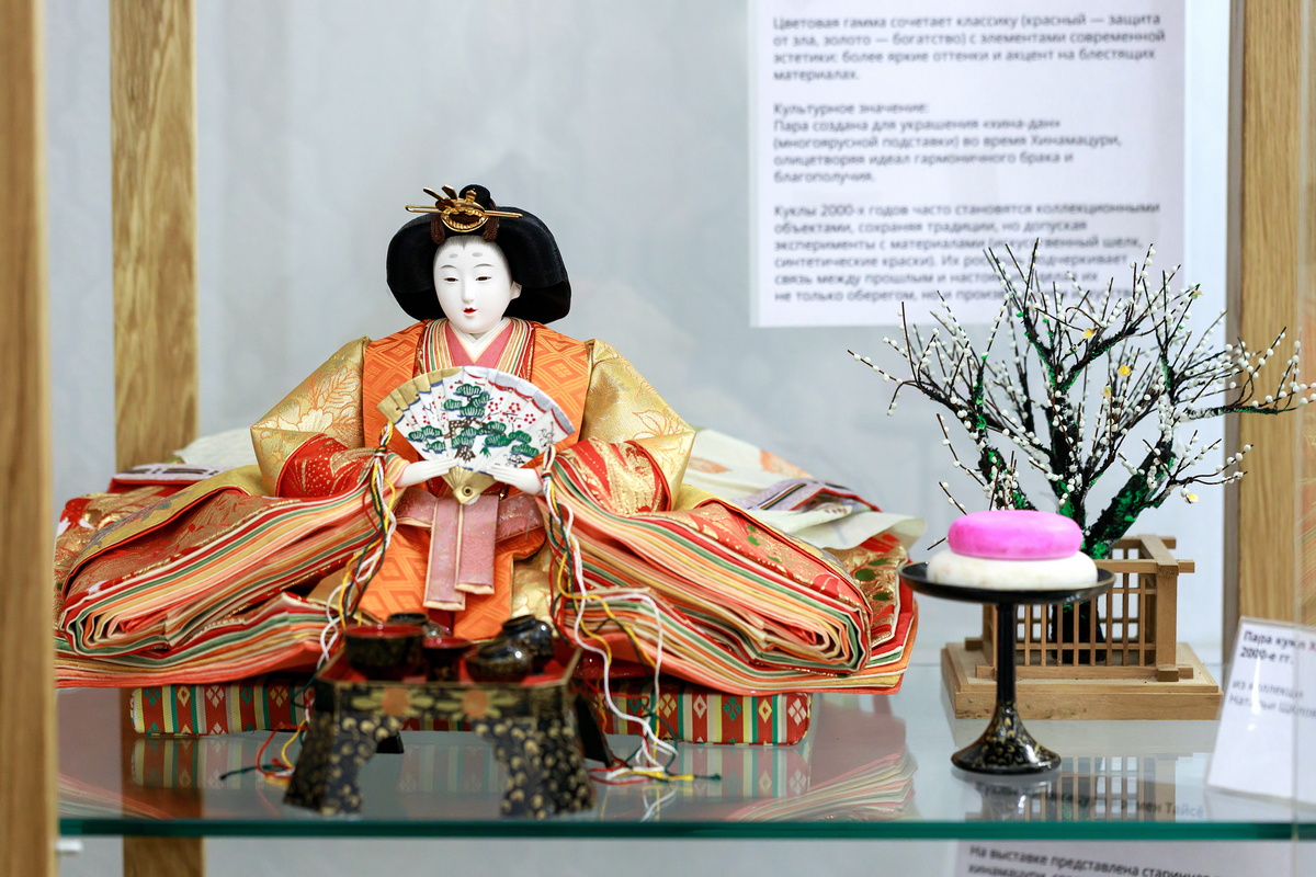 В центре экспозиции — коллекционные куклы разных эпох из собрания Натальи Щегловой и авторские работы Наталии Имамуры, изготовленные в японской традиционной технике «кимекоми».